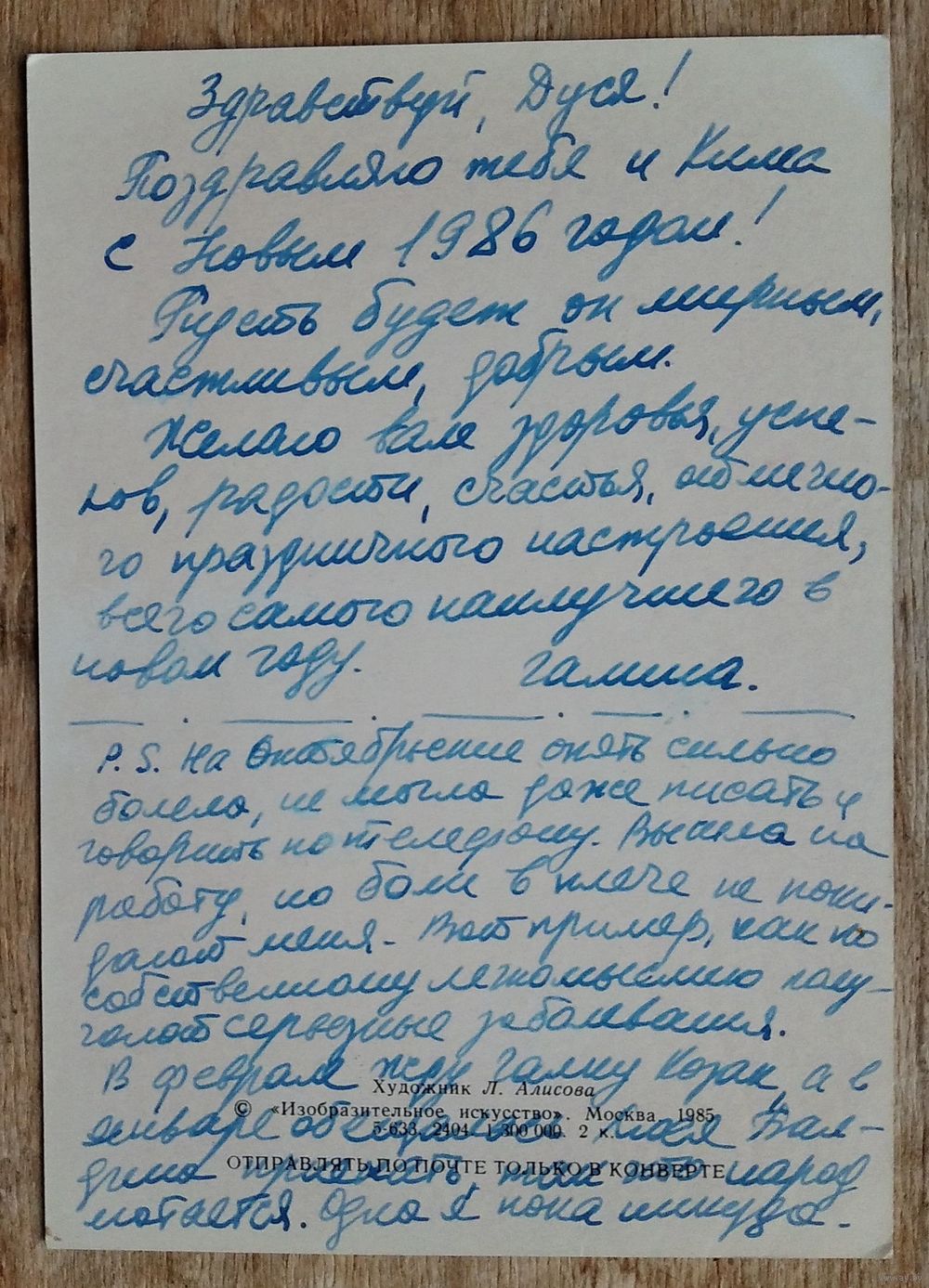 Алисова Л. С Новым годом! 1985 г. Подписана.