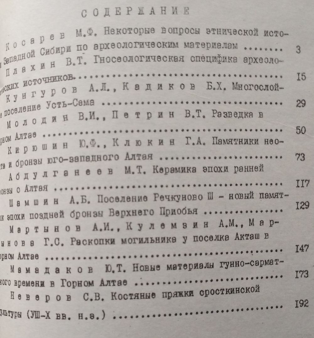 Большой формат. Тираж 500 экз. 298 стр. В межвузовском сборникe исследуются вопросы, связанные со спецификой археологических источников, с формированием и хронологией археологических культур эпохи камня и металла на территории Алтайского края.