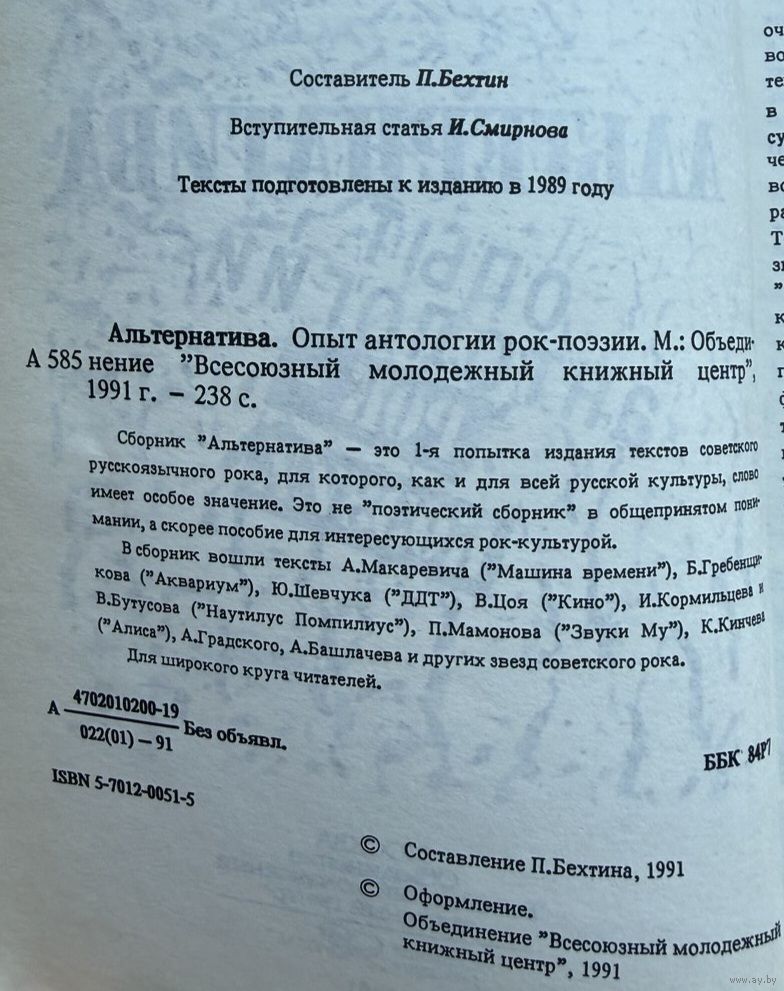 Альтернатива Опыты антологии рок-поэзии