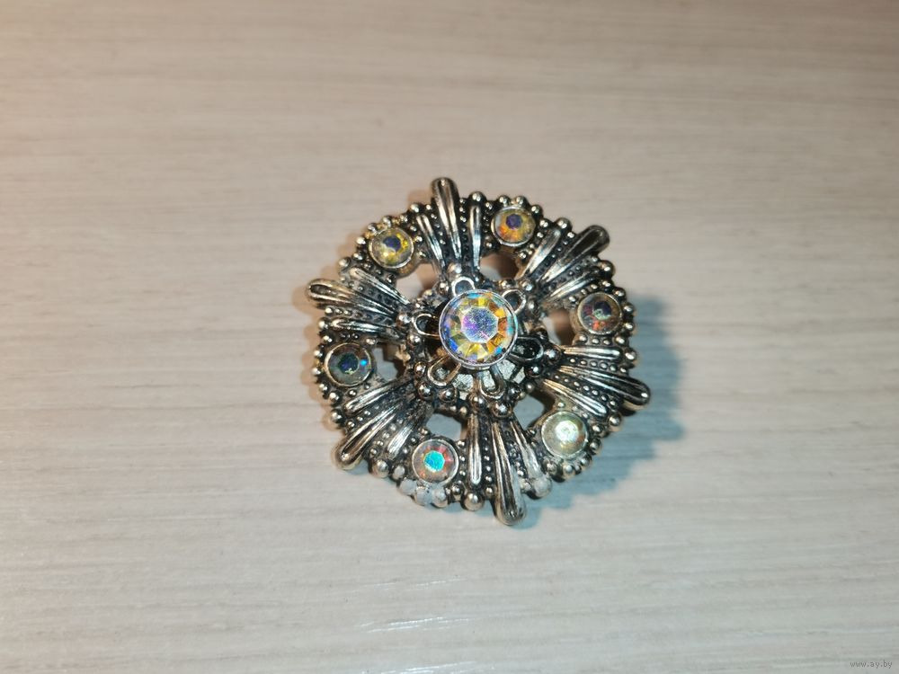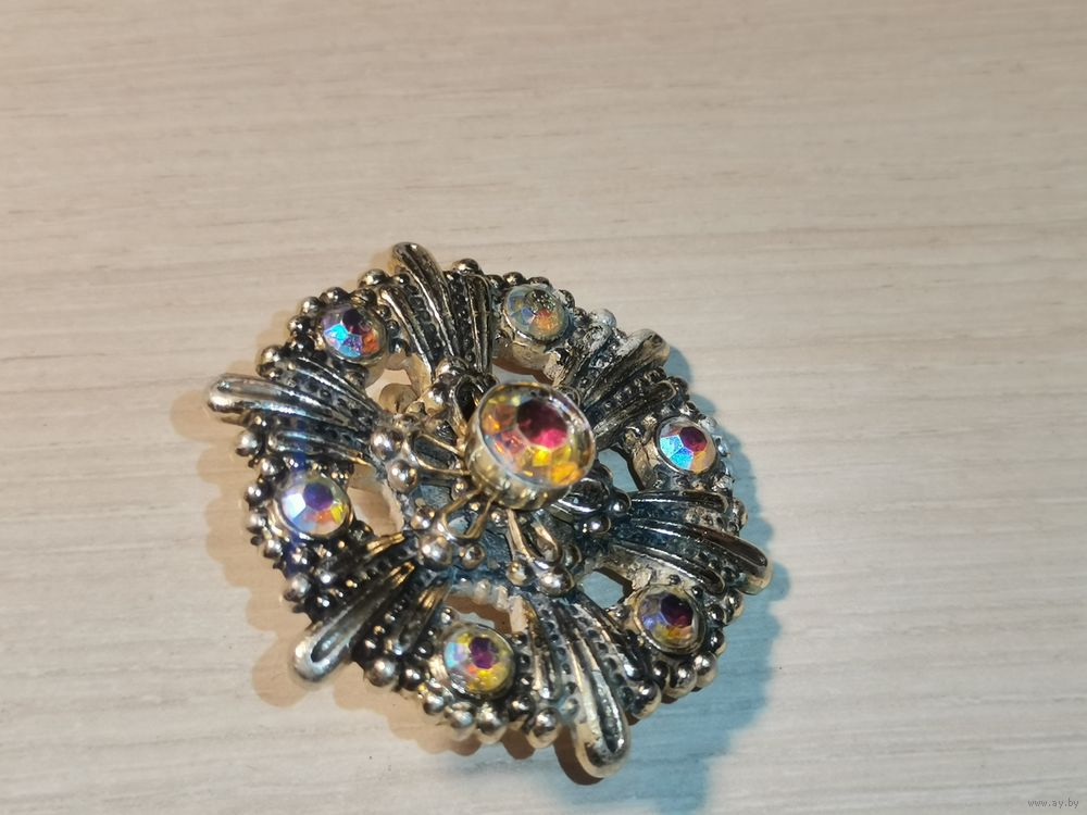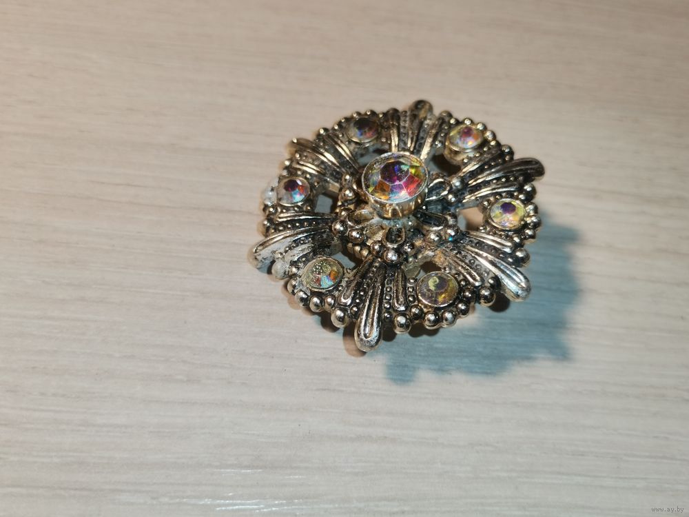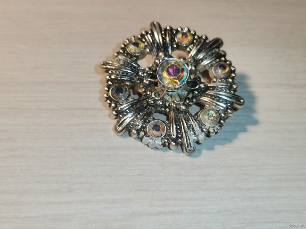 Алюминиевая брошь с вставками, времён СССР, диаметр 4.5 см.