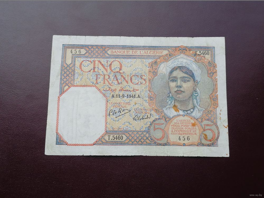 Алжир 5 франков 1941