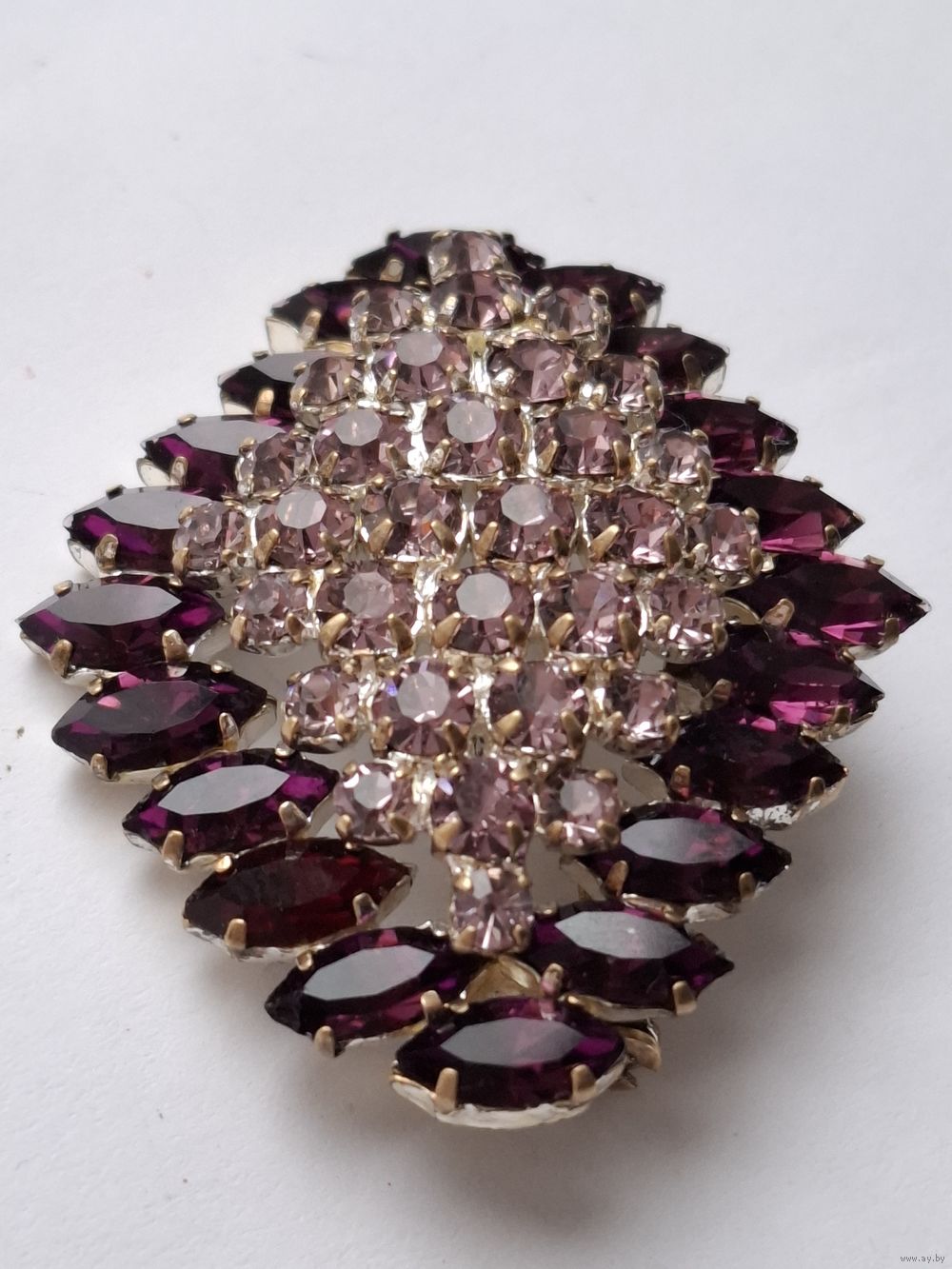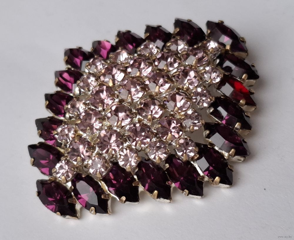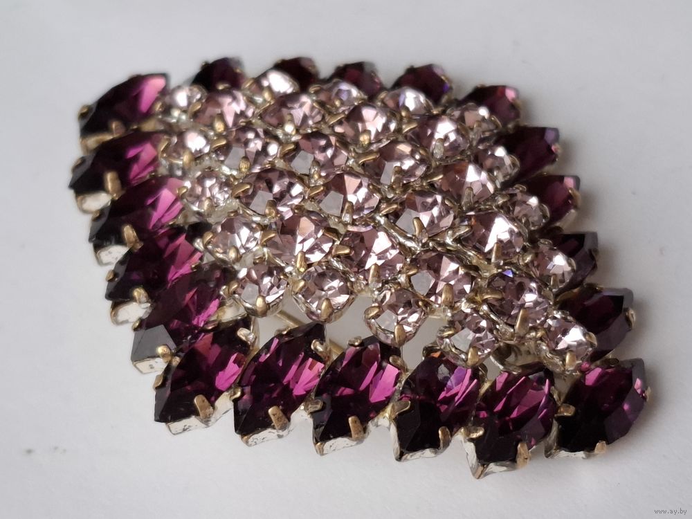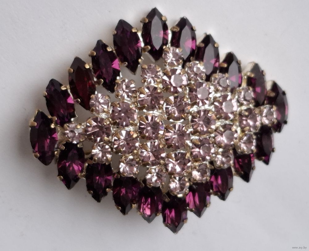 Аметистовая брошь. Фигурный ромб. Кристаллы. Чехословакия.