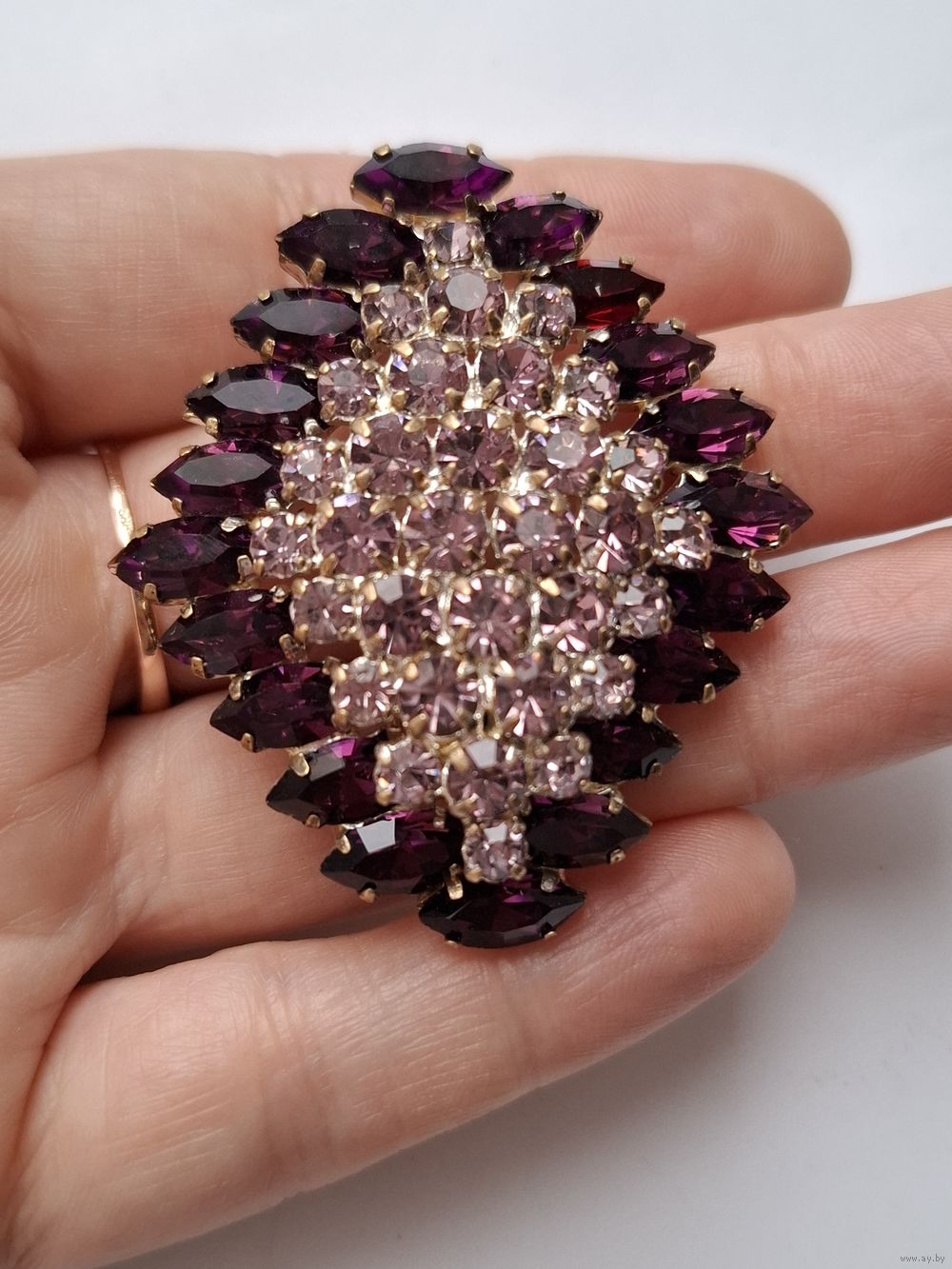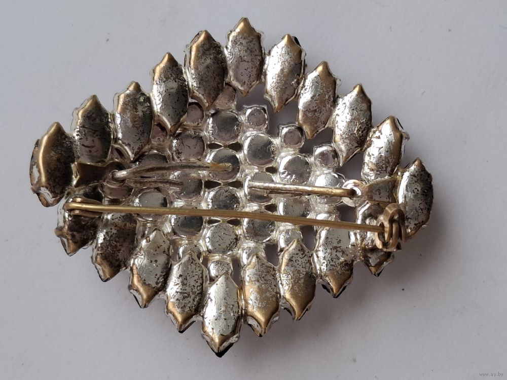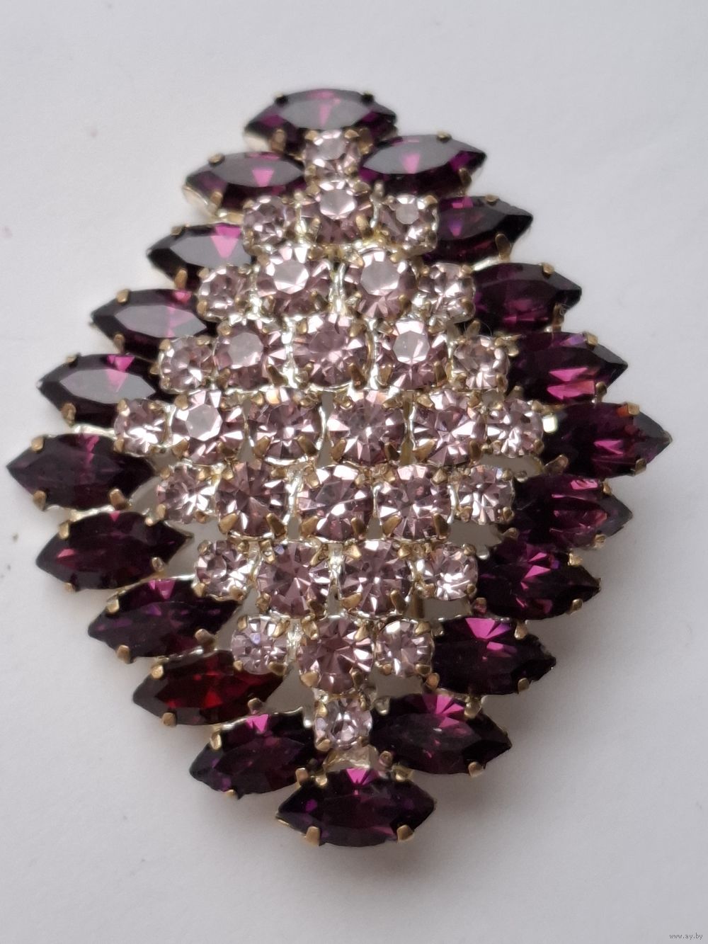 Аметистовая брошь. Фигурный ромб. Кристаллы. Чехословакия.