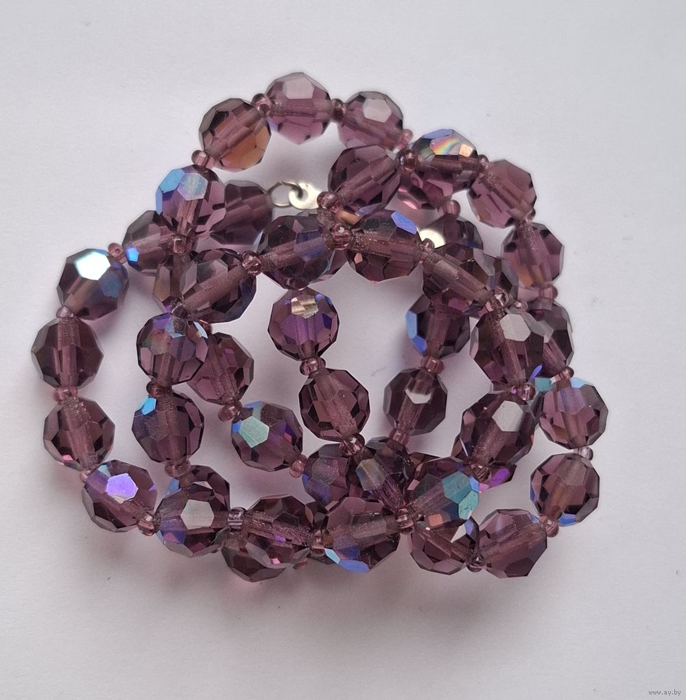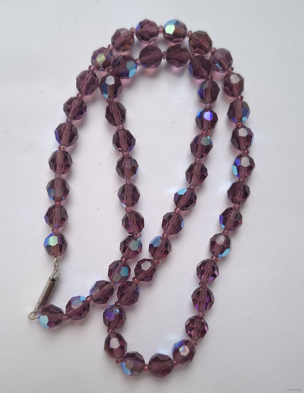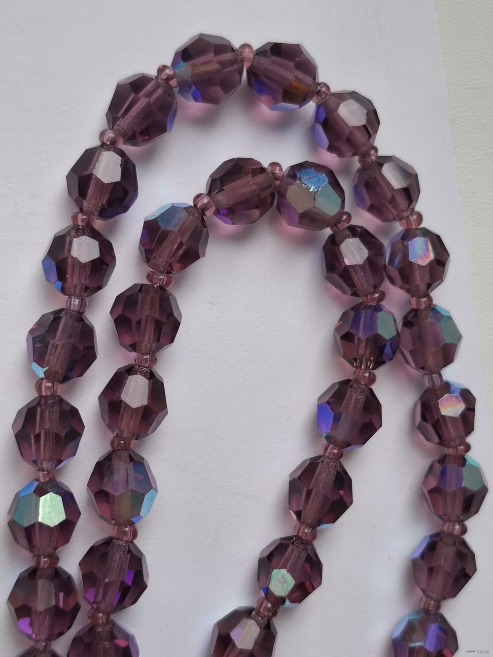 Бусы Aurora Borealis Аметистовые шарики, огранка, сияют.