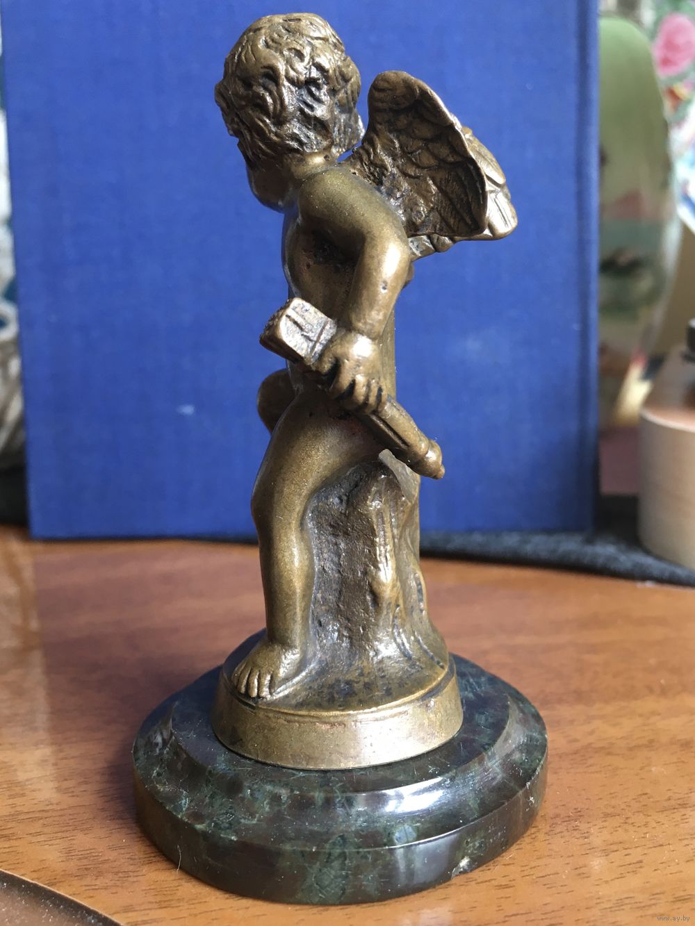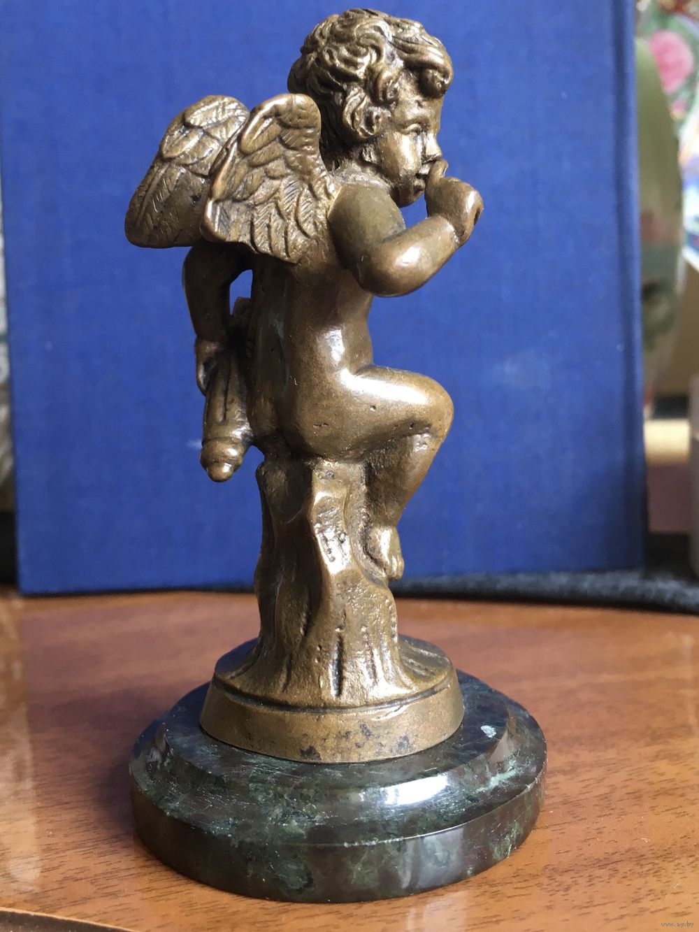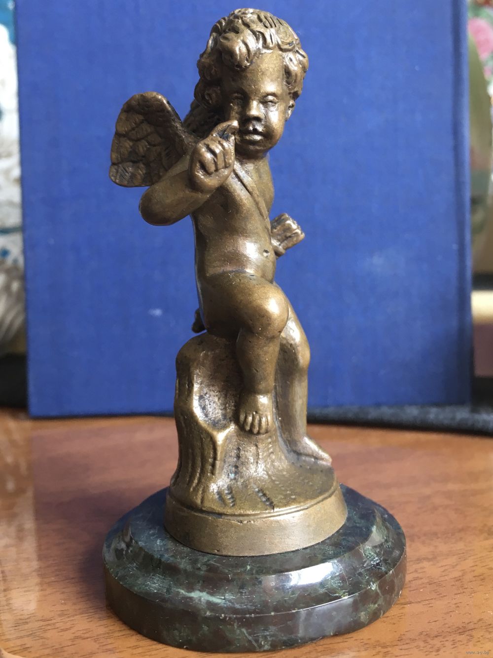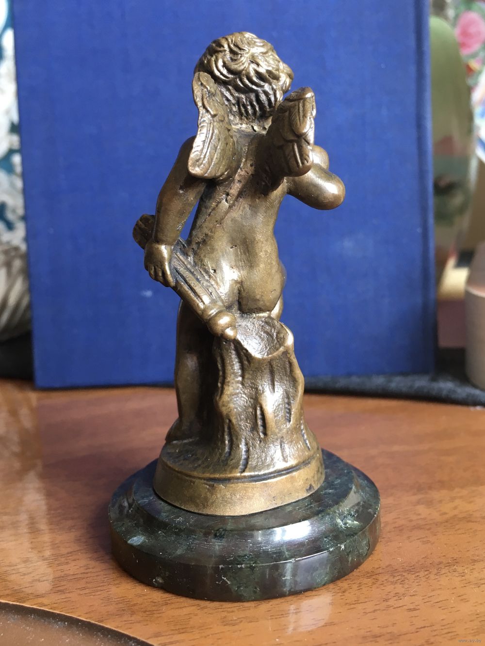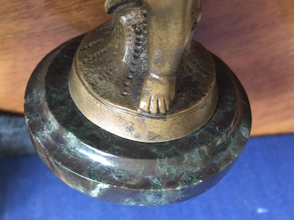 Россия, рубеж 19-20 веков, бронза, высота с основанием 9,5 см, без основания 8 см. Основание - шлифованный камень темно-зелёного цвета