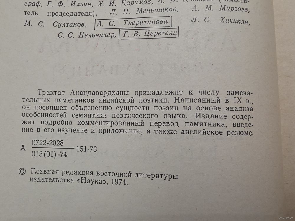 Анандавардхана. Дхваньялока ("Свет Дхвани") Серия: Памятники Письменности Востока