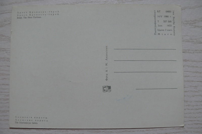 Ананьины А. и М., Брест. Холмские ворота; 1966, чистая, изд. Минск.