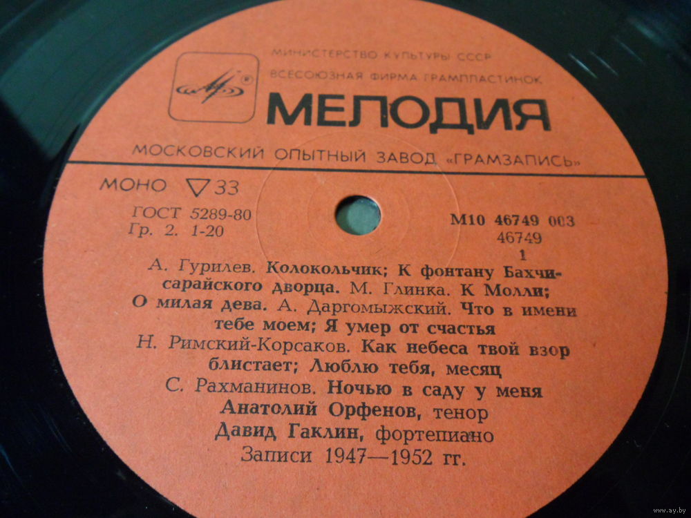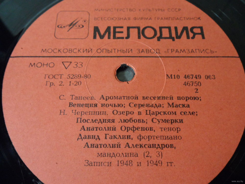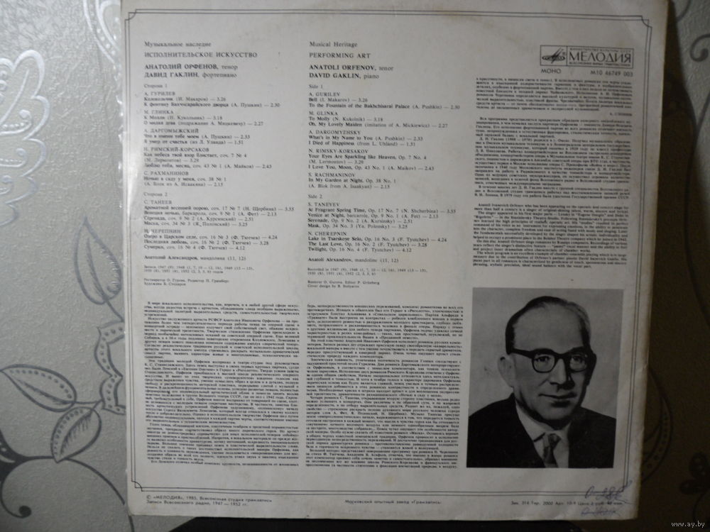 Анатолий Орфенов (тенор) - А. Гурилев, М. Глинка, А. Даргомыжский, Н. Римский-Корсаков, С. Рахманинов, С. Танеев, Н. Черепнин - Мелодия, МОЗГ