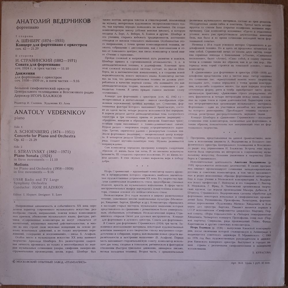 Анатолий Ведерников - А.Шёнберг / И.Стравинский – Концерт для фортепиано с оркестром / Соната для фортепиано / "Движения" для фортепиано с оркестром