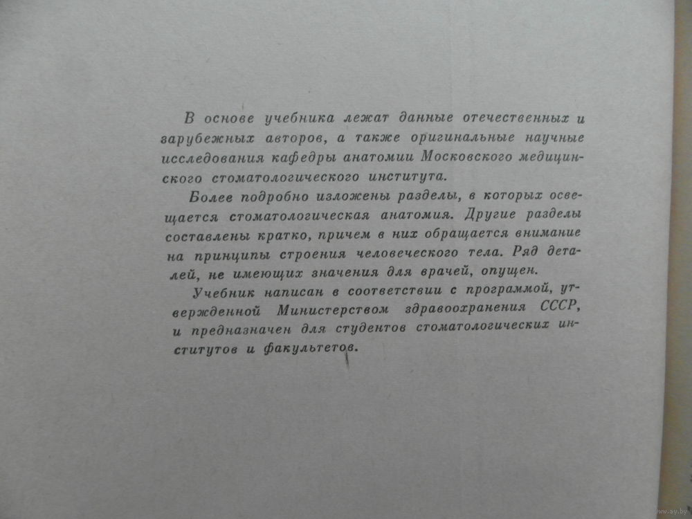 В основе учебника лежат данные отечественных и зарубежных авторов, а также оригинальные научные исследования кафедры анатомии Московского медицинского стоматологического института. Более подробно изложены разделы, в которых освещается стоматологическая анатомия.