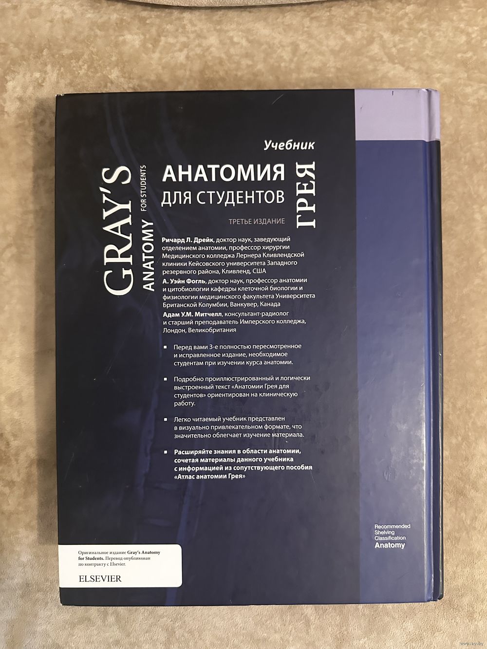 Книга "Анатомия Грея для студентов" - третье издание учебника по анатомии, мирового бестселлера по изучению анатомии человека. В книге, в отличие от канонического изучения анатомии, описаны анатомия не по системам органов, а по анатомическим областям (особенности, регионарная анатомия, поверхностная анатомия, взаимодействие с другими областями тела), рассмотрено значение анатомических знаний в клинической практике, анатомия патологии и клинические случаи. Состояние - на обложке есть минимальные потертости. Внутри - полностью новая.