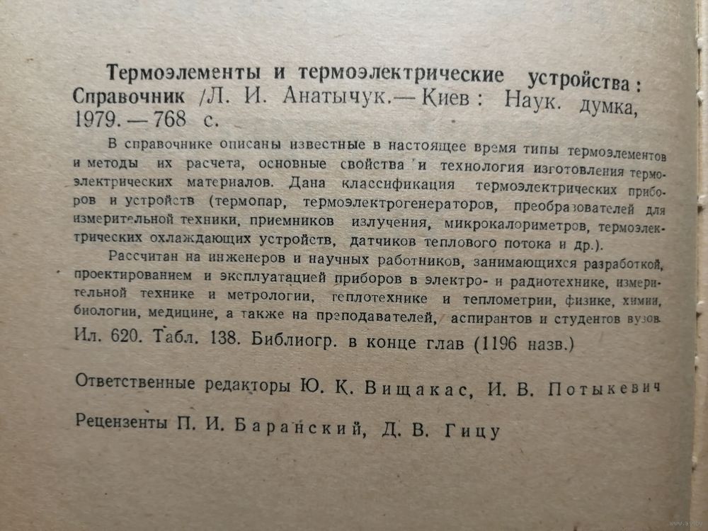 В справочнике описаны термоэлементы, методы их расчета, свойства и технология изготовления термоэлектрических материалов. Рассматриваются классификация термоэлектрических термопар и устройств, их применение в различных сферах — для научных работников, инженеров и студентов.