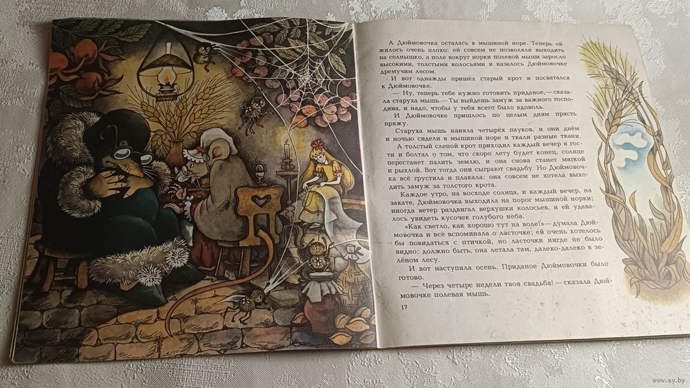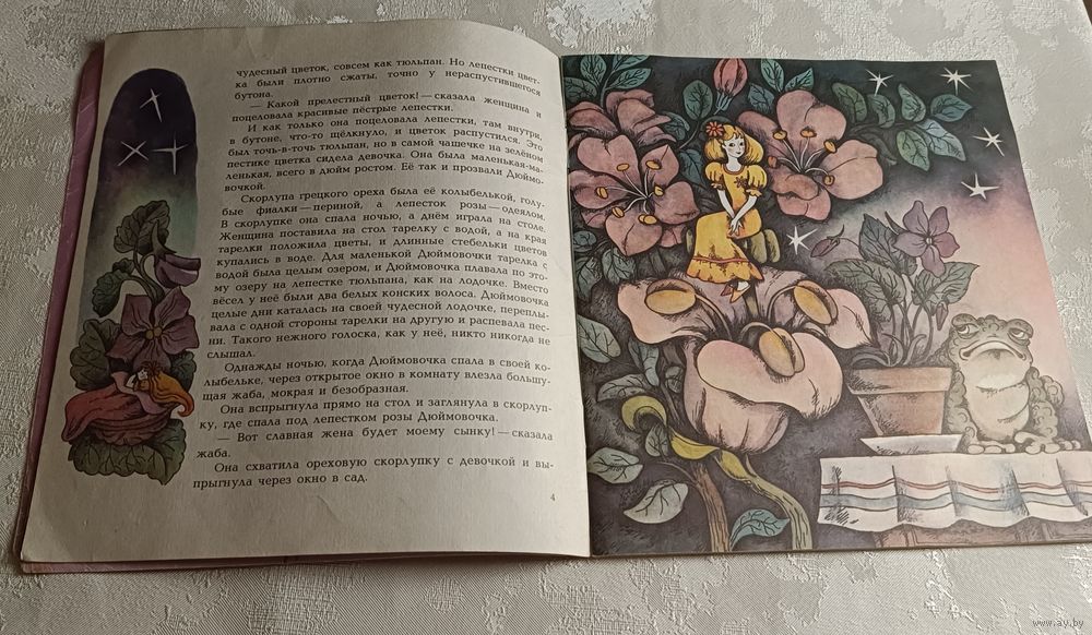 Сказка рассказывает о крошечной девочке по имени Дюймовочка, которая родилась из ячменного зерна.