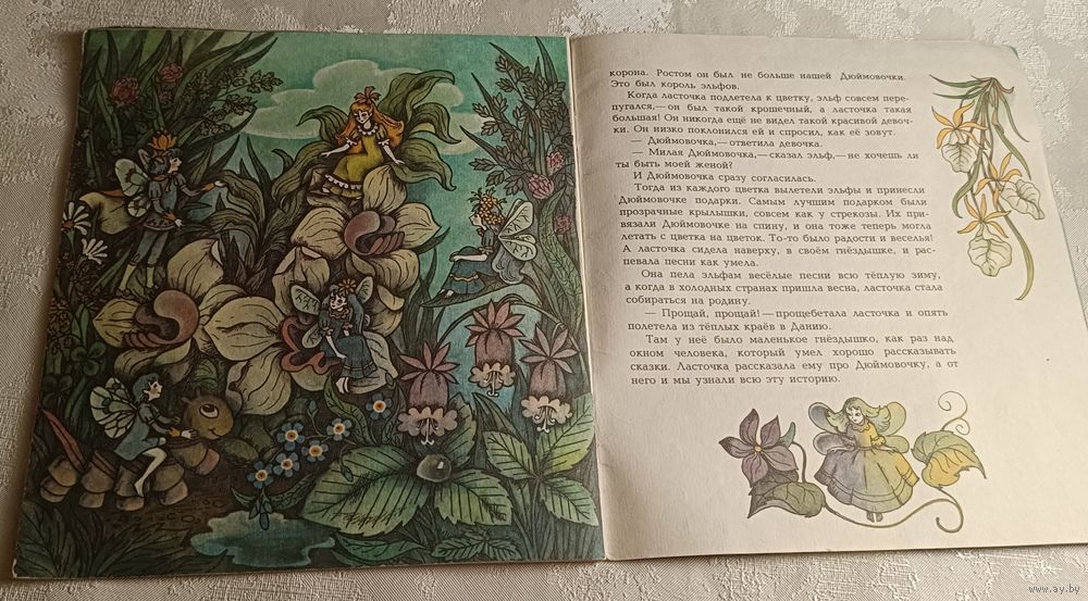 В конце истории Дюймовочка встречает принца эльфов и выходит за него замуж.