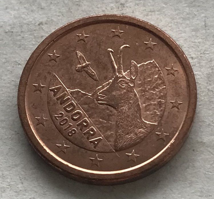 Андорра 1 евроцент 2018 - Бородач (Серна) - в блеске!