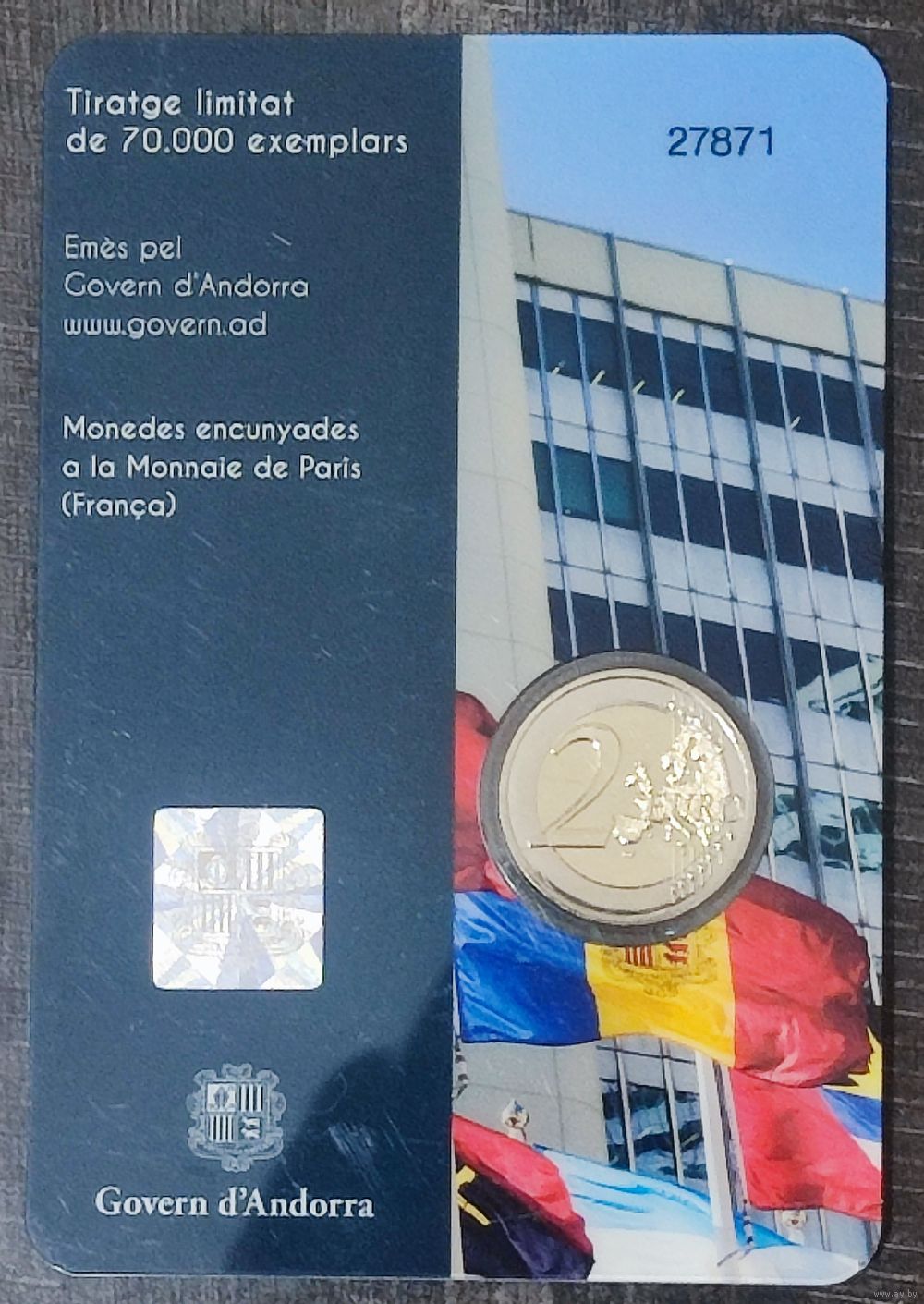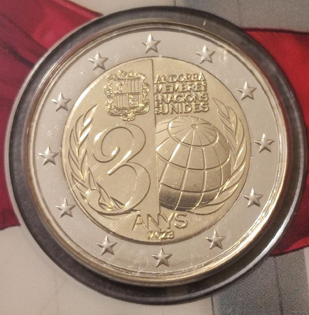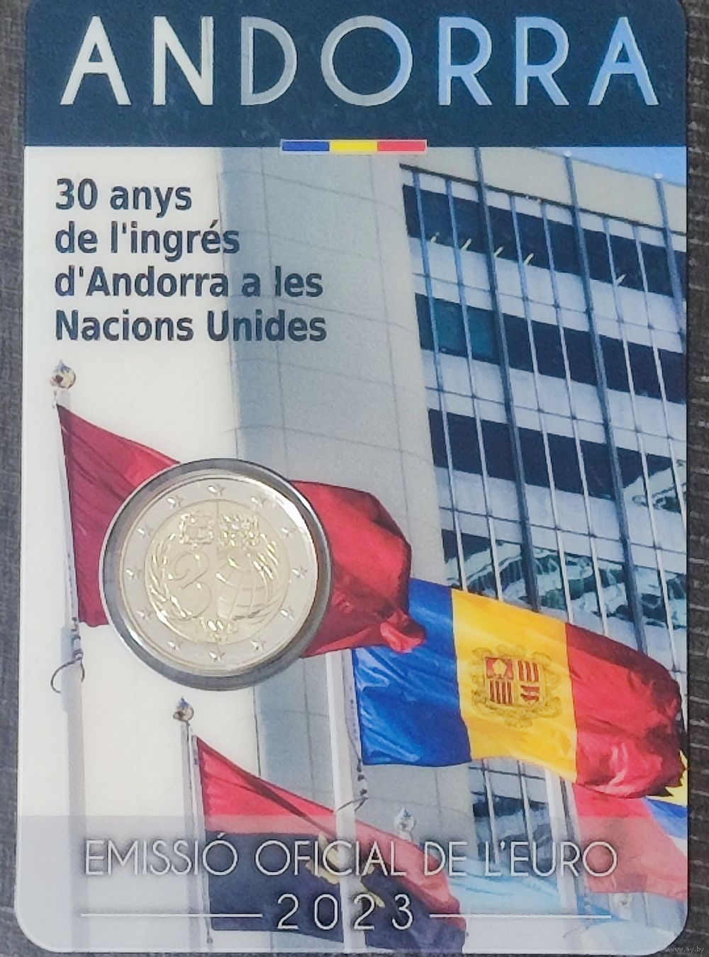 Андорра 2 евро 2023 г. 30 лет вступления Андорры в ООН.
