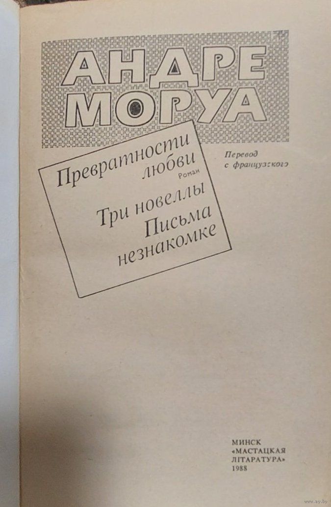 Андре Моруа "Превратности любви. Три новеллы. Письма незнакомке"