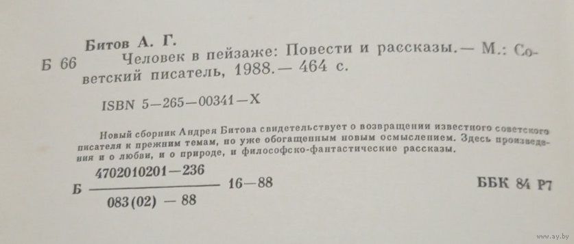 Андрей Битов. Человек в пейзаже. 464 стр. Передача в Витебске при личной встрече возле ратуши. Пересылка в другой город за счёт покупателя по тарифам Белпочты либо Европочты после 100% предоплаты.