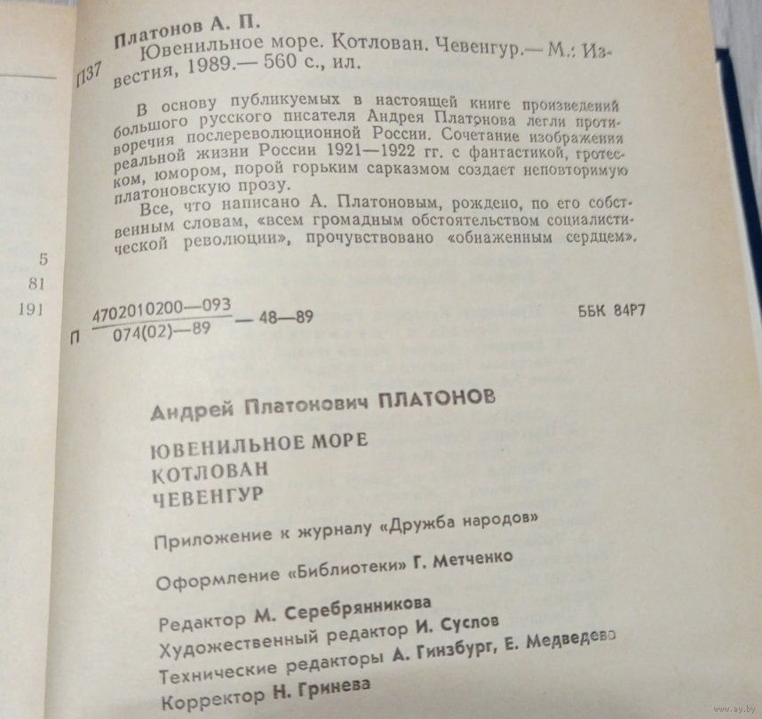 Андрей Платонов.Чевенгур. Котлован. Ювениальное море. 560 стр. Передача в Витебске возле ратуши. Пересылка в другой город за счёт покупателя по тарифам Белпочты либо Европочты после 100% предоплаты.