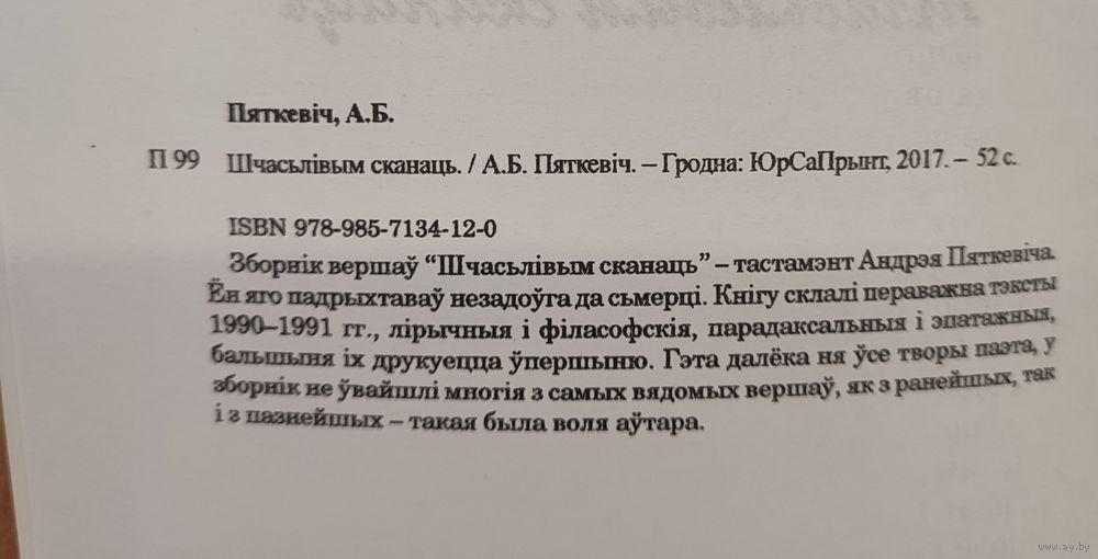 "Гэты невялічкі зборнік паэт уклаў сам, перапісаў у сшытак вершы і перадаў на захаванне свайму сябру паэту Юрасю Пацюпу, пазначаўшы ў сшытку, што пры выданні зборніка нельга ўносіць праўкі, змяняць правапіс, ламаць радкі і парушаць інтэрвалы паміж строфамі. Выдаўцы выканалі патрабаванні паэта. Цяпер Юрась Пацюпа працуе над выбраным Андрэя Пяткевіча, у якое паспрабуе сабраць усё, што атрымаецца знайсці – нават эпісталярную спадчыну".