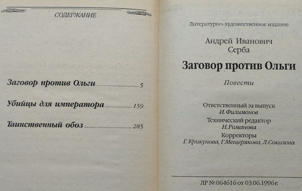 Тираж 20000 экз. 384 стр. В книге собраны остросюжетные произведения Андрея Сербы, посвященные различным периодам русской истории. Для его повестей характерны стремительно развивающийся сюжет, острота интриги. Героические подвиги во имя Родины, коварство изменников, стойкость русского характера - все это, без сомнения, привлечет внимание читателя.
