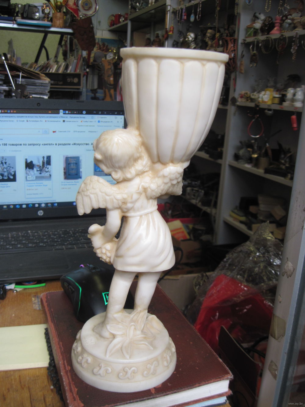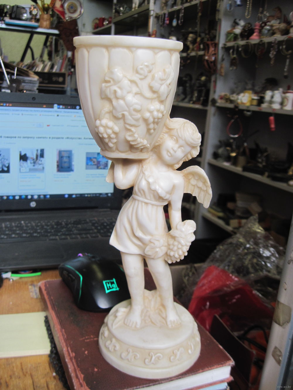 Ангел с чашей и виноградом 27,5 см. Колкий пластик.