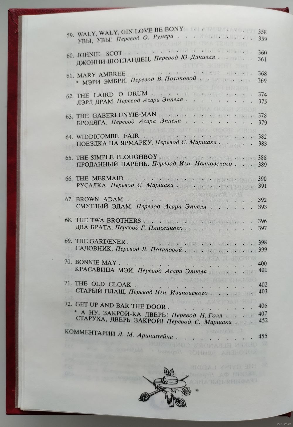Английская и шотландская народная баллада / The English and Scottish popular ballads. Сборник. На английском языке с параллельным русским текстом. Составление, предисловие и комментарии Л.М. Аринштейна. Худ. Борисова Е.М. М.: Радуга, 1988г., 512 с. Твёрдый переплёт, обычный формат.