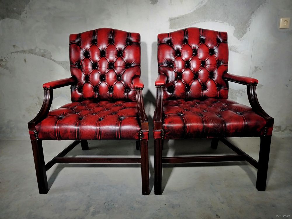 Английские винтажные кожаные кресла Chesterfield. Модель Gainsborough.