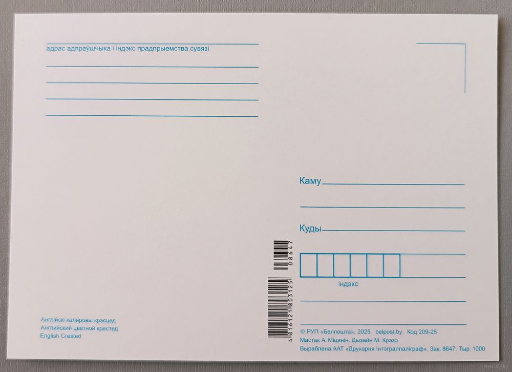 Английский цветной крестед. Из серии"Домашние питомцы". Открытка, глянец