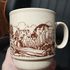 Красивые Английские чашка с синем старинным рисунком кони извозчики и кремовая кружка с рельефным рисунком загородной жизни: дома, курочки, петухи, собаки.