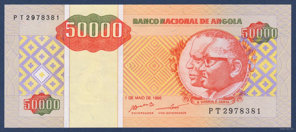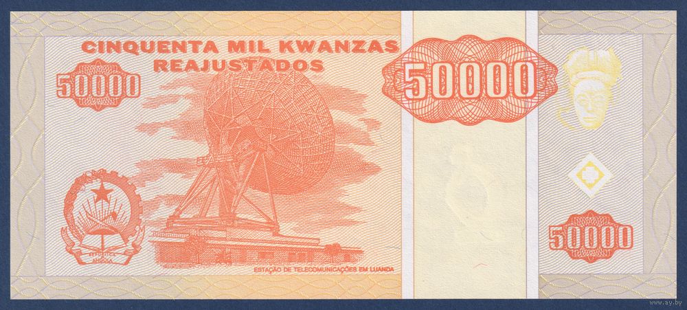 Ангола, 50000 кванза 1995 г., P-138 (PT, президенты, телекоммуникационная станция в Луанде), UNC