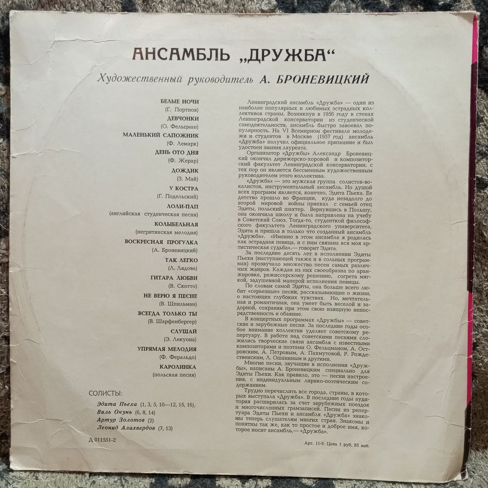 | пластинка/конверт: VG...EX-/VG+ | |