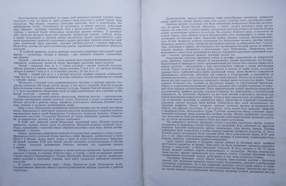 Большой энциклопедический формат. Мелованный альбом. Тираж 10000 экз. 208 стр. Античная культура, возникшая во II и достигшая расцвета в I тысячелетии до нашей эры на Балканском полуострове, островах Эгейского моря и побережье Малой Азии, по праву может быть названа культурой, заложившей основы всей позднейшей европейской цивилизации. Многочисленные сохранившиеся до наших дней памятники античной пластики свидетельствуют о том, что одним из самых развитых видов искусства в древней Греции была скульптура. Настоящее издание содержит иллюстративный материал, отражающий развитие эллинской скульптуры.