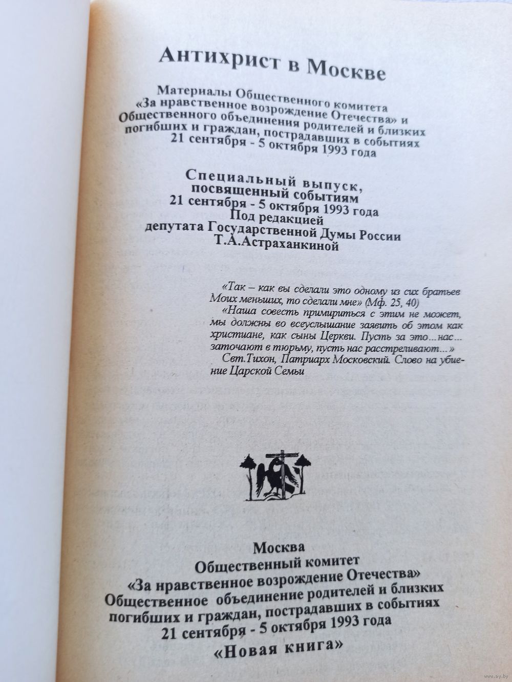 Антихрист в Москве. Материалы общественного комитета "За нравственное возрождение Отечества". Содержание на доп. фото | 256 страниц, отличное состояние, тираж 5000, 1997 год