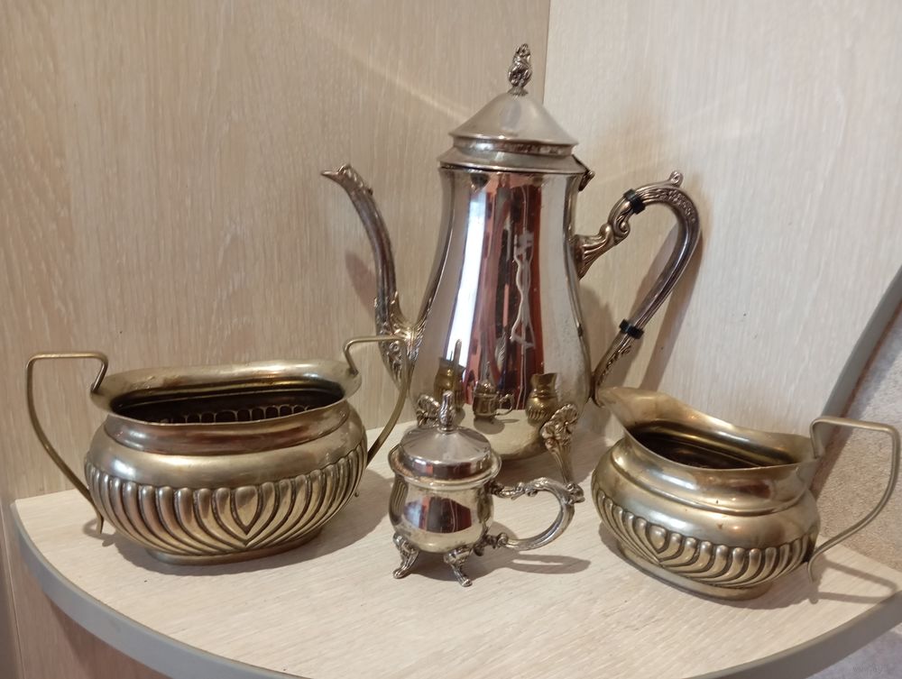 Антиквариат Германия 40. Годы , кофейник серебрение 28 см ,молочник и сахарница серебрение ,маленькая Сахарница уже продана , цена за комплект 220