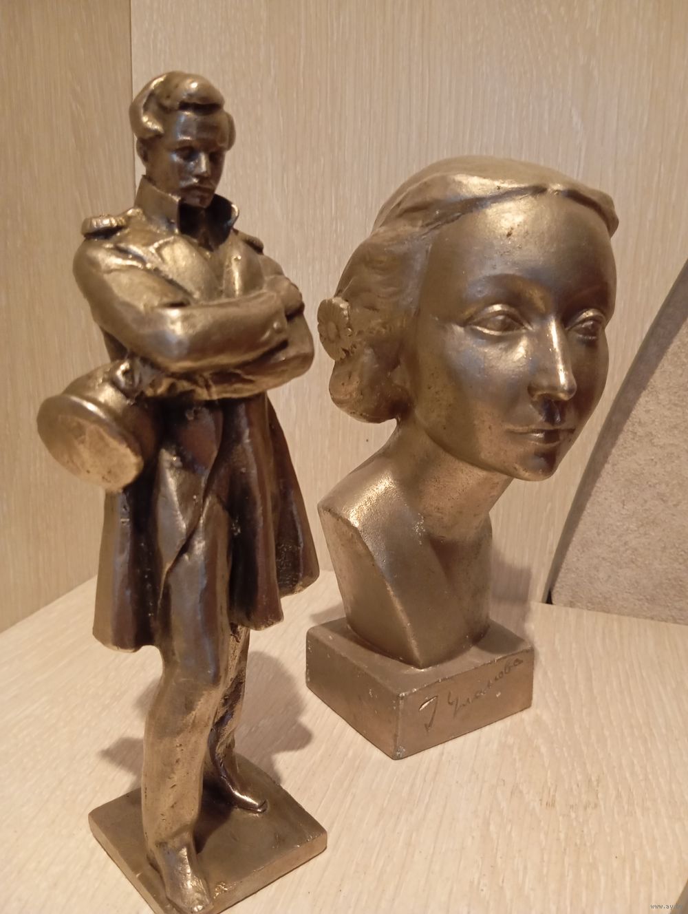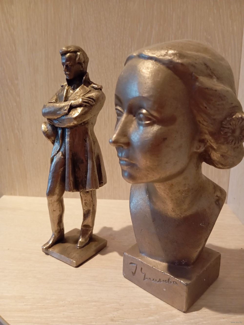 Литьё СССР Статуэтка Михаил Лермонтов производство Госмонументскульптура высота 22 см цена 80 рублей и Галина Уланова 80 годы высота 21 см цена 80 рублей