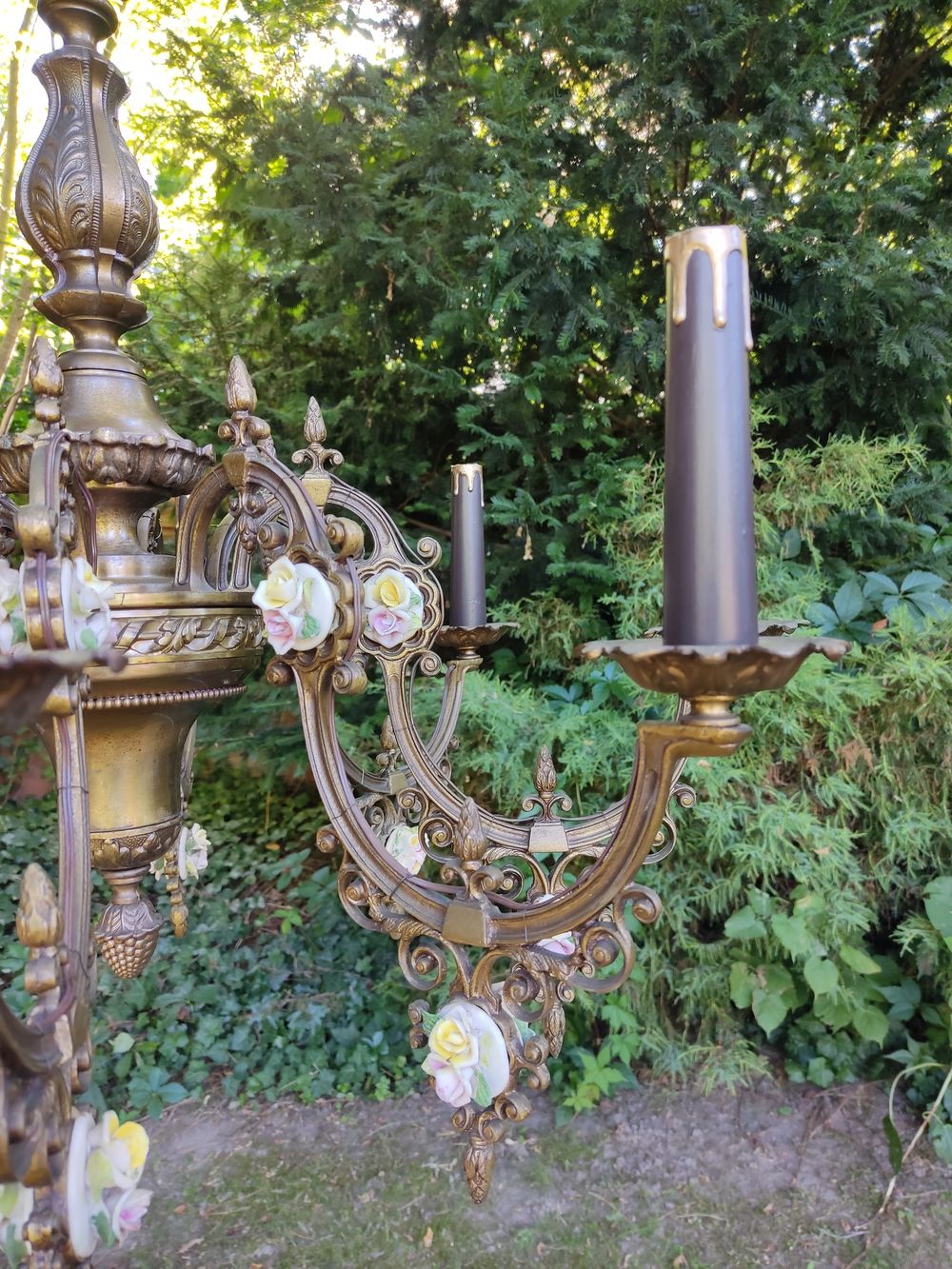Антикварная Бронзовая Люстра, Керамика, 8 рожков, Италия.