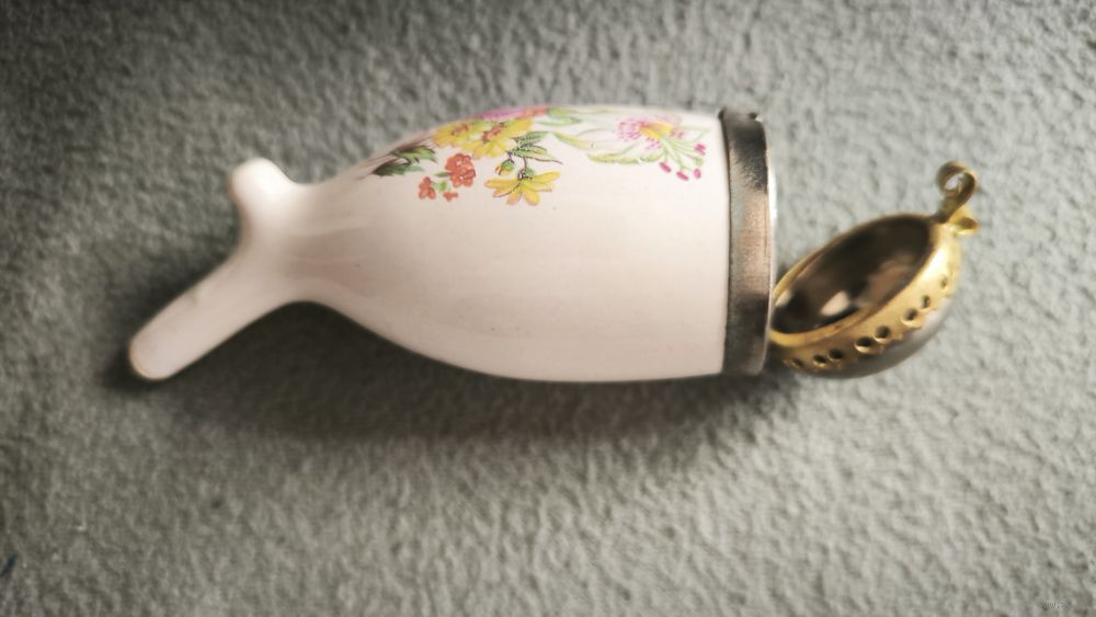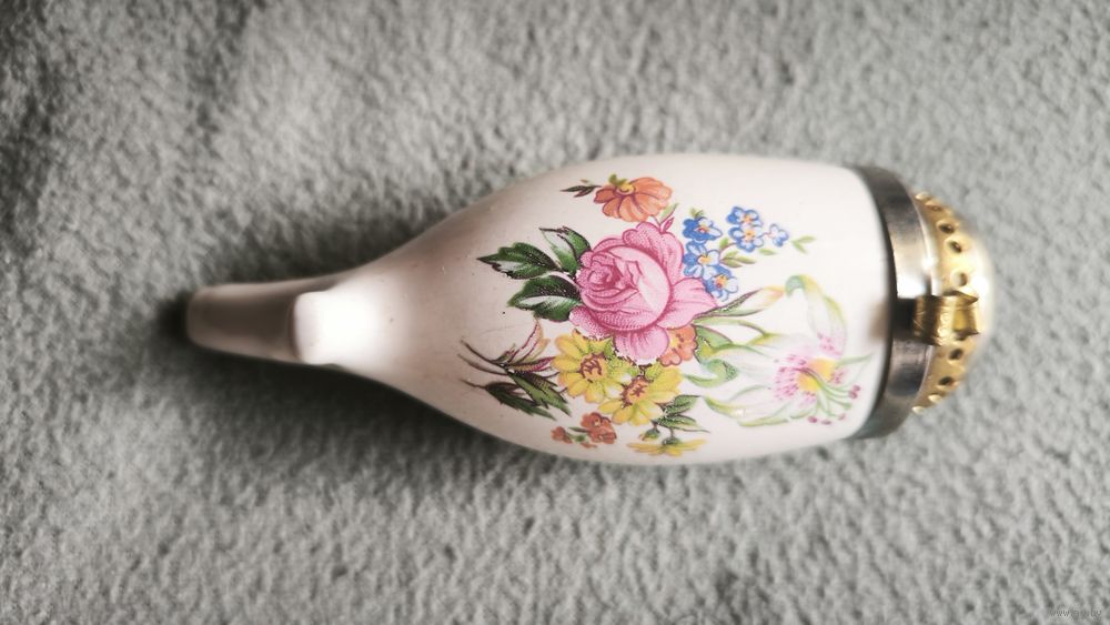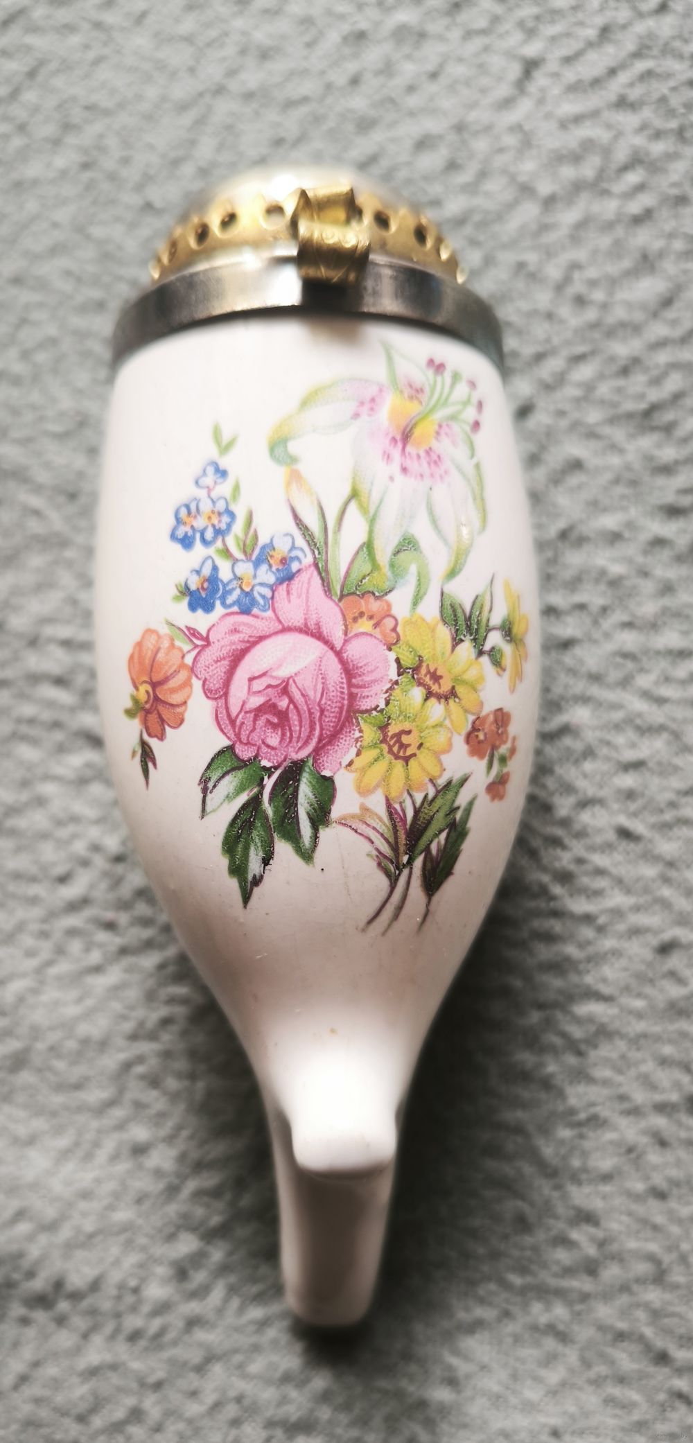Сюжет: Ручная надглазурная роспись (цветочный букет с центральной розой и лилиями) — классический мотив для городских и подарочных трубок того времени.