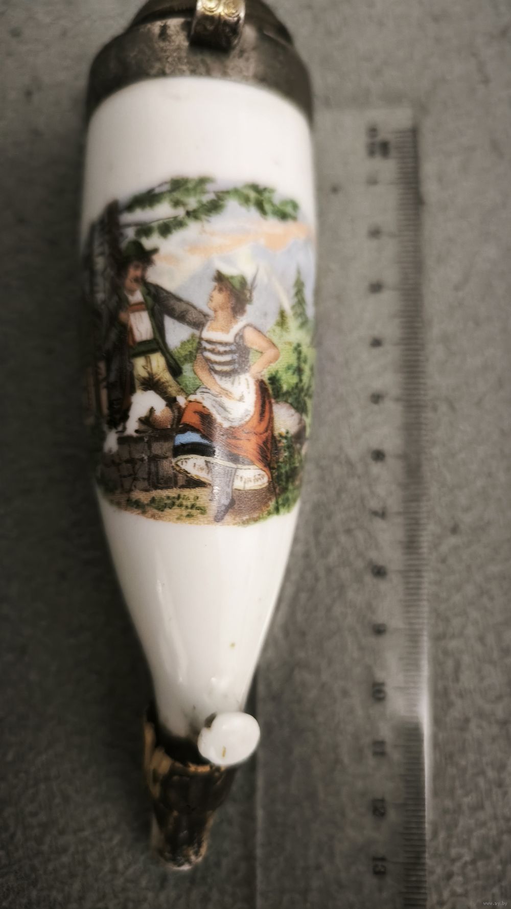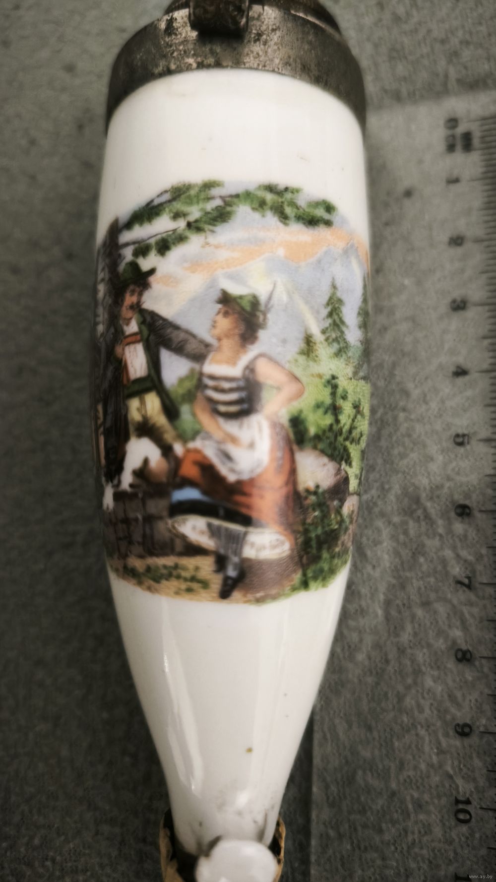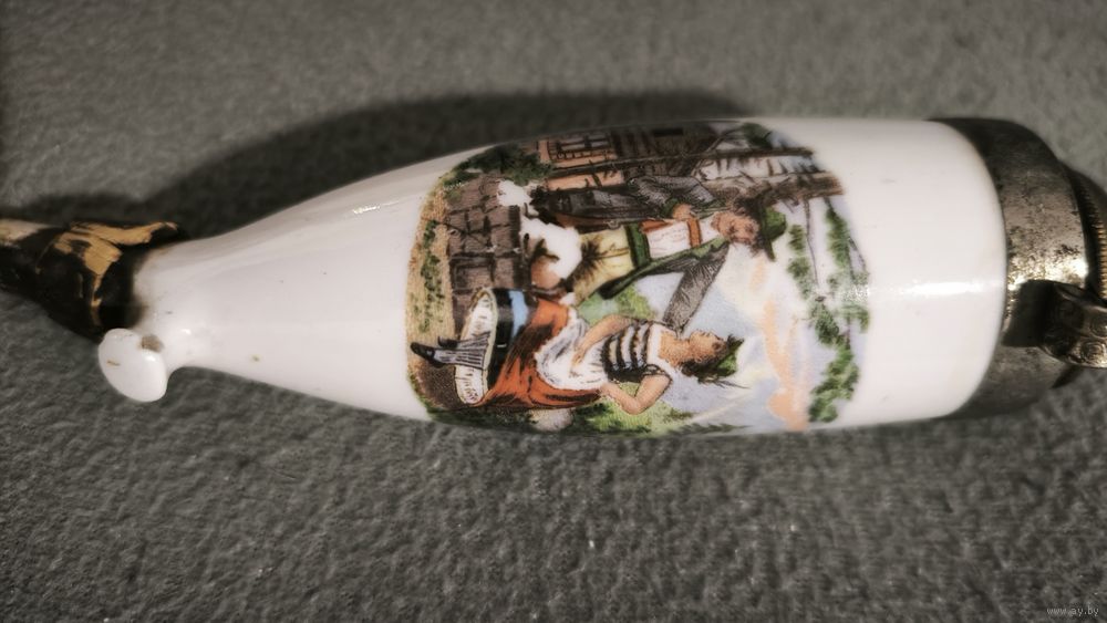 Редкая портретно-жанровая чаша для традиционной составной трубки. В отличие от простых цветочных мотивов, данный экземпляр представляет собой полноценную художественную миниатюру.