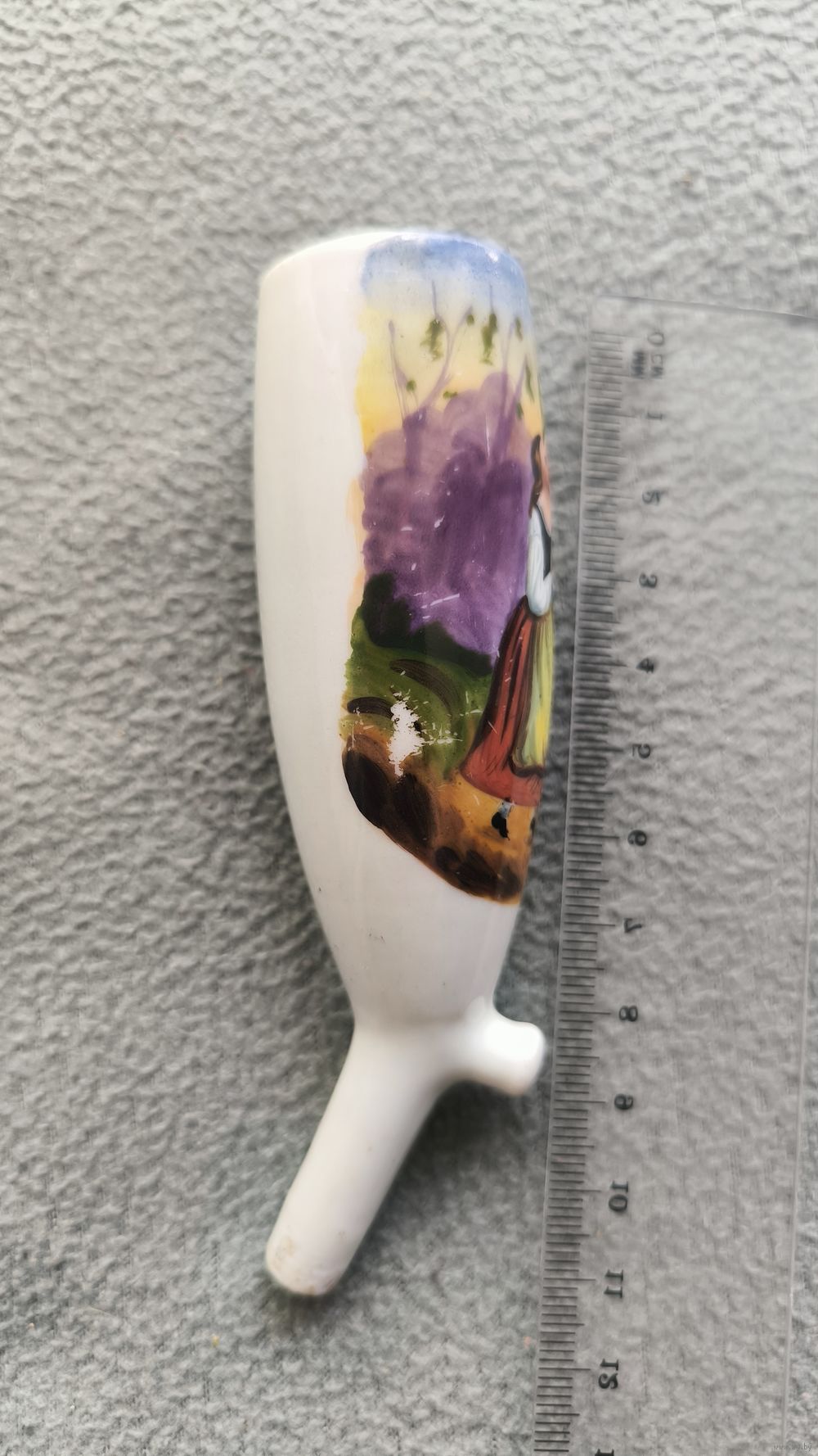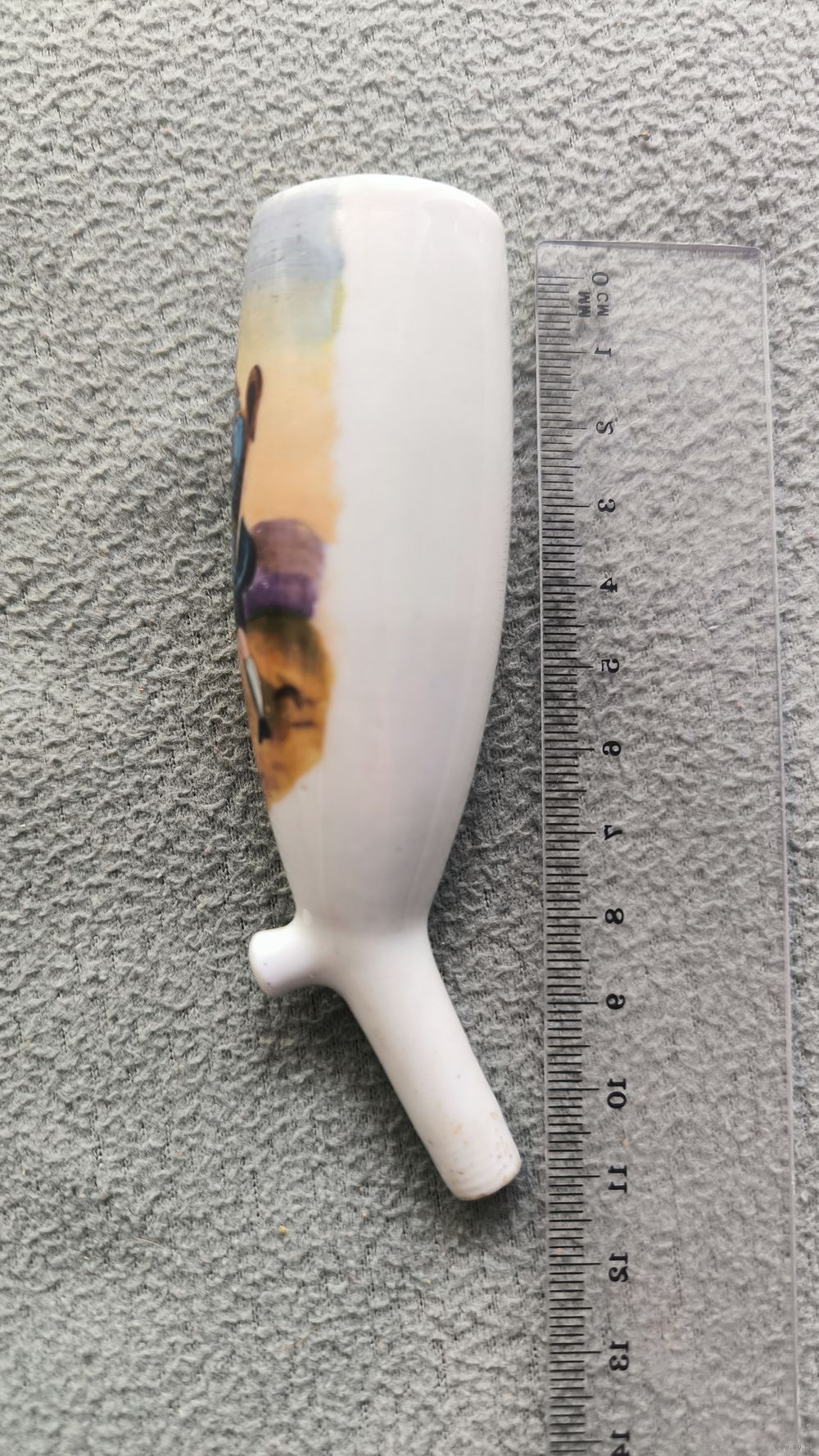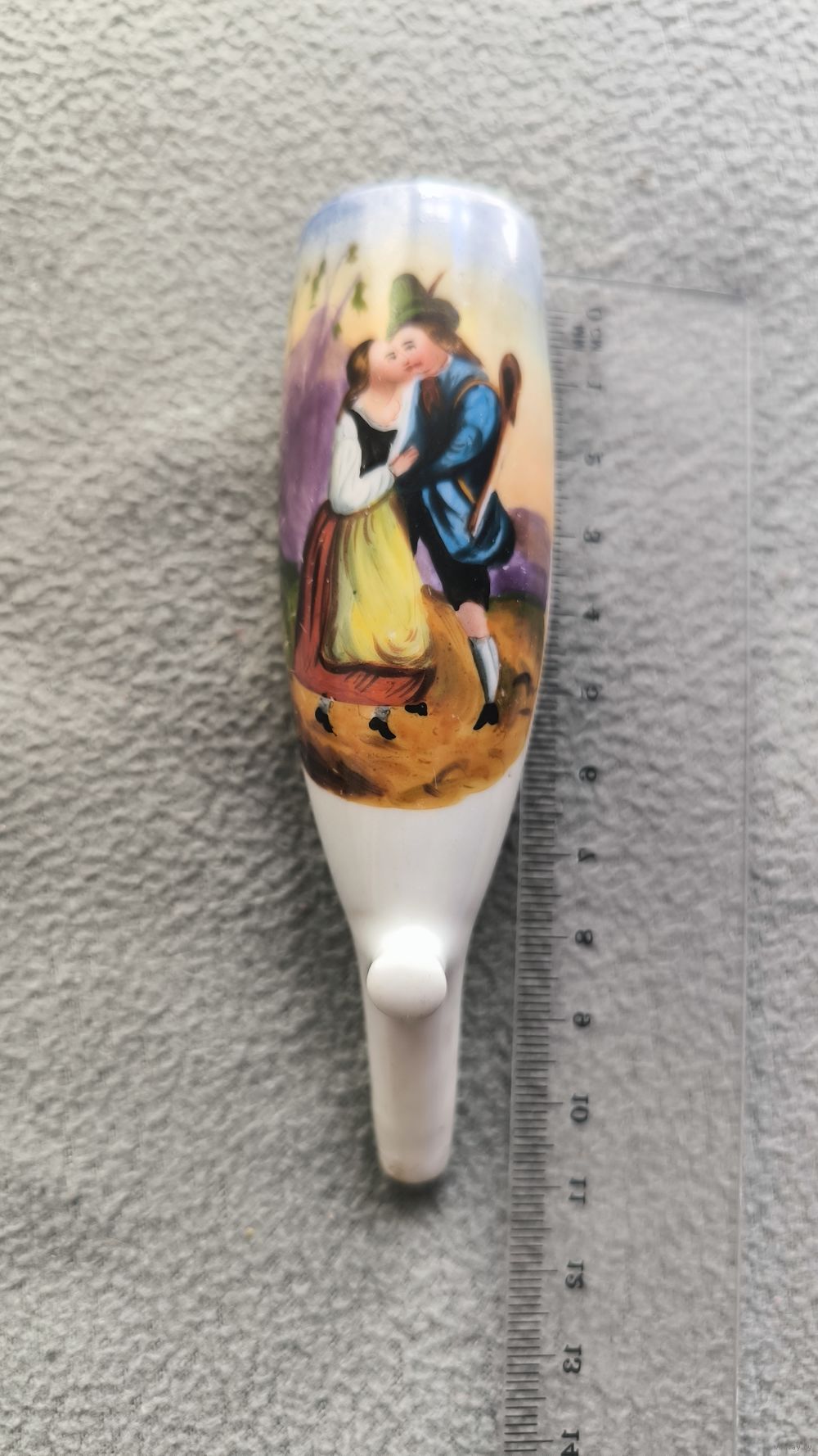 Редкая портретно-жанровая чаша для традиционной составной трубки. В отличие от простых цветочных мотивов, данный экземпляр представляет собой полноценную художественную миниатюру.