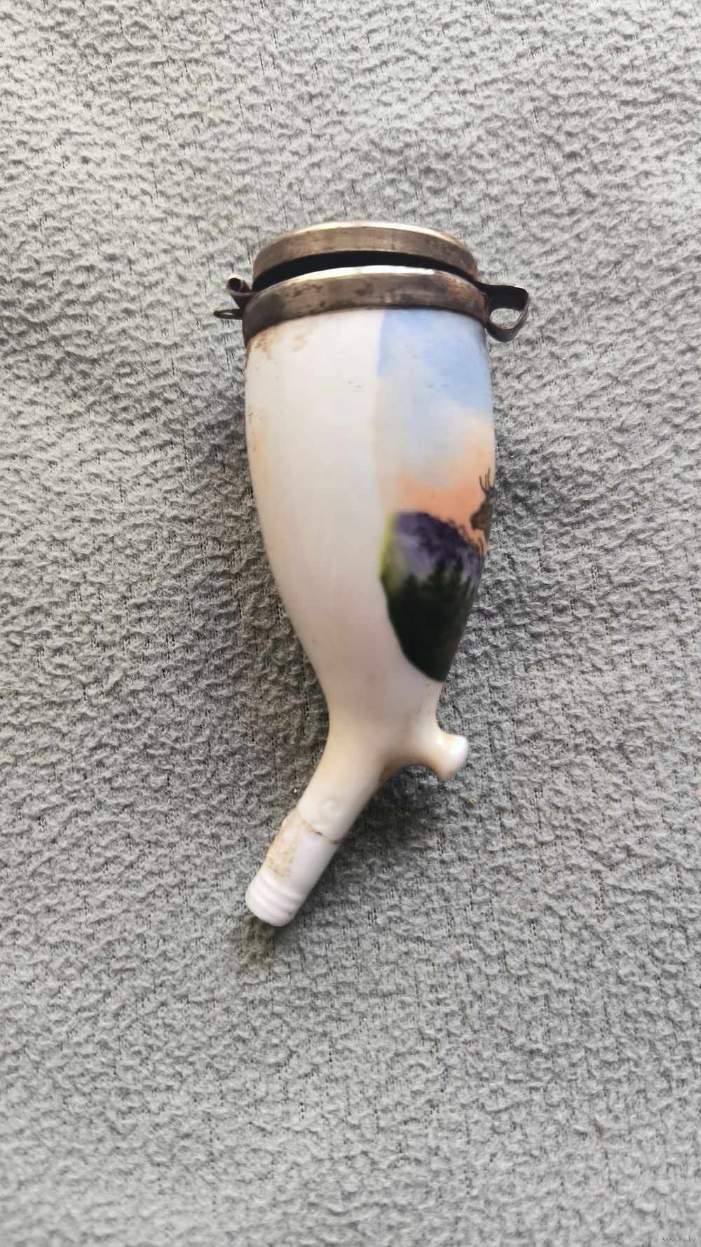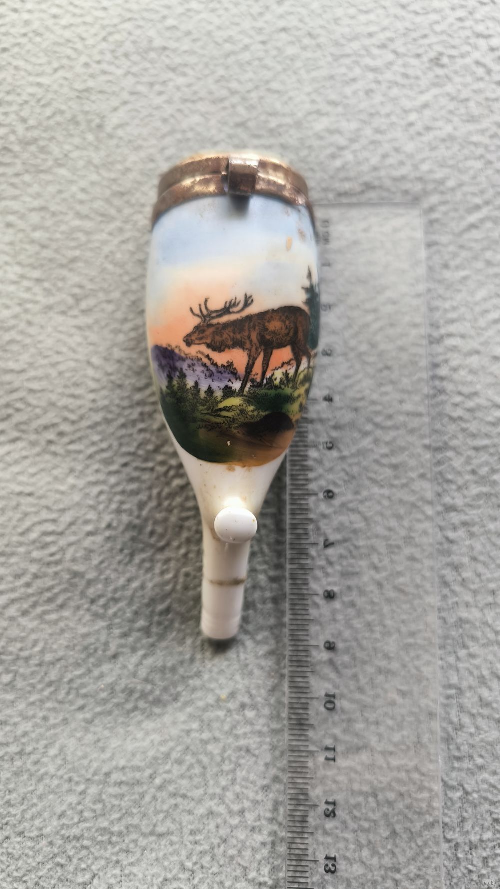 Антикварная фарфоровая чашка трубки."Олень в горах". Германия.19в Охотничья серия "Егерьская"