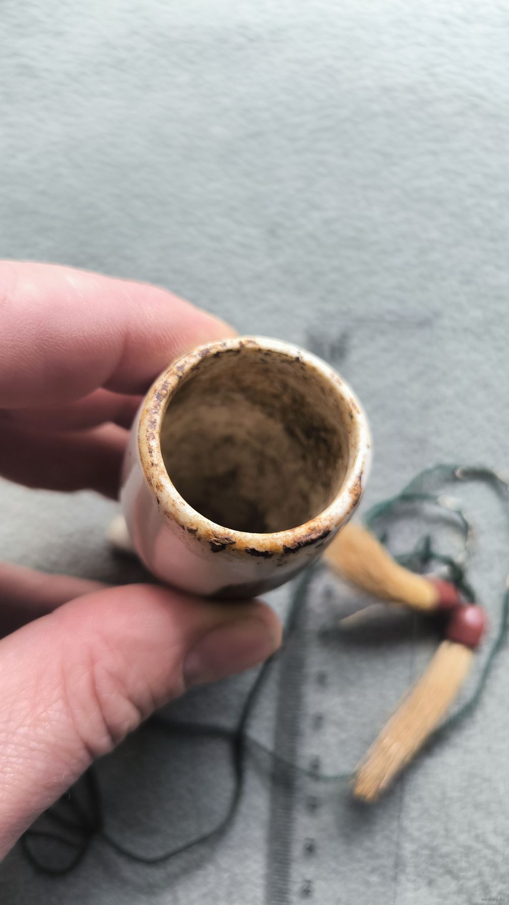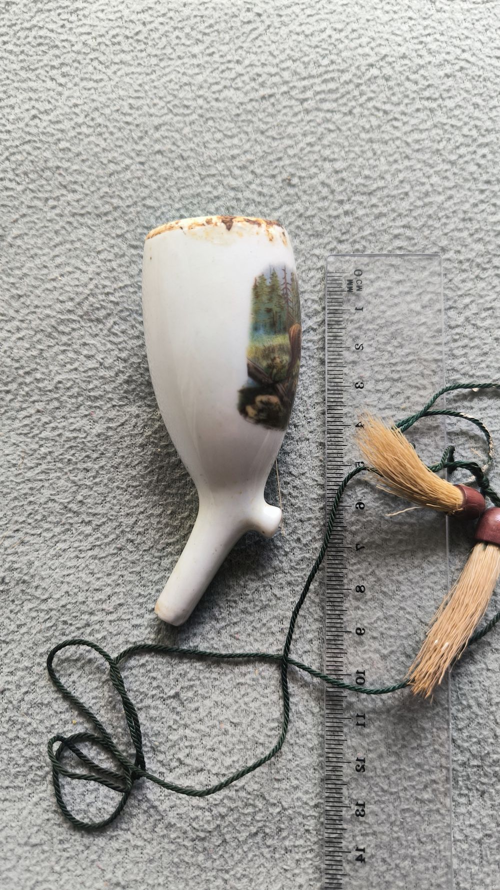 Аналогичная чаша с изображением оленя представлена в коллекции Amsterdam Pipe Museum (инвентарный номер APM 3.608). Подобные предметы были обязательным атрибутом охотников, лесничих и аристократии во время загородного отдыха. Музейная датировка: 1880–1920-е гг.