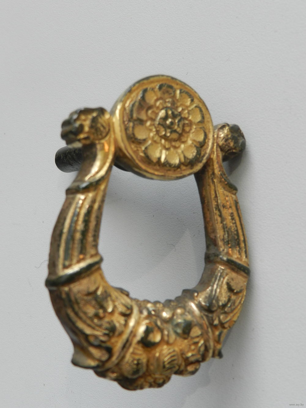 Антикварная французская ручка-кольцо для ящика в стиле Людовика XVI, украшенная орнаментом (ормолу).