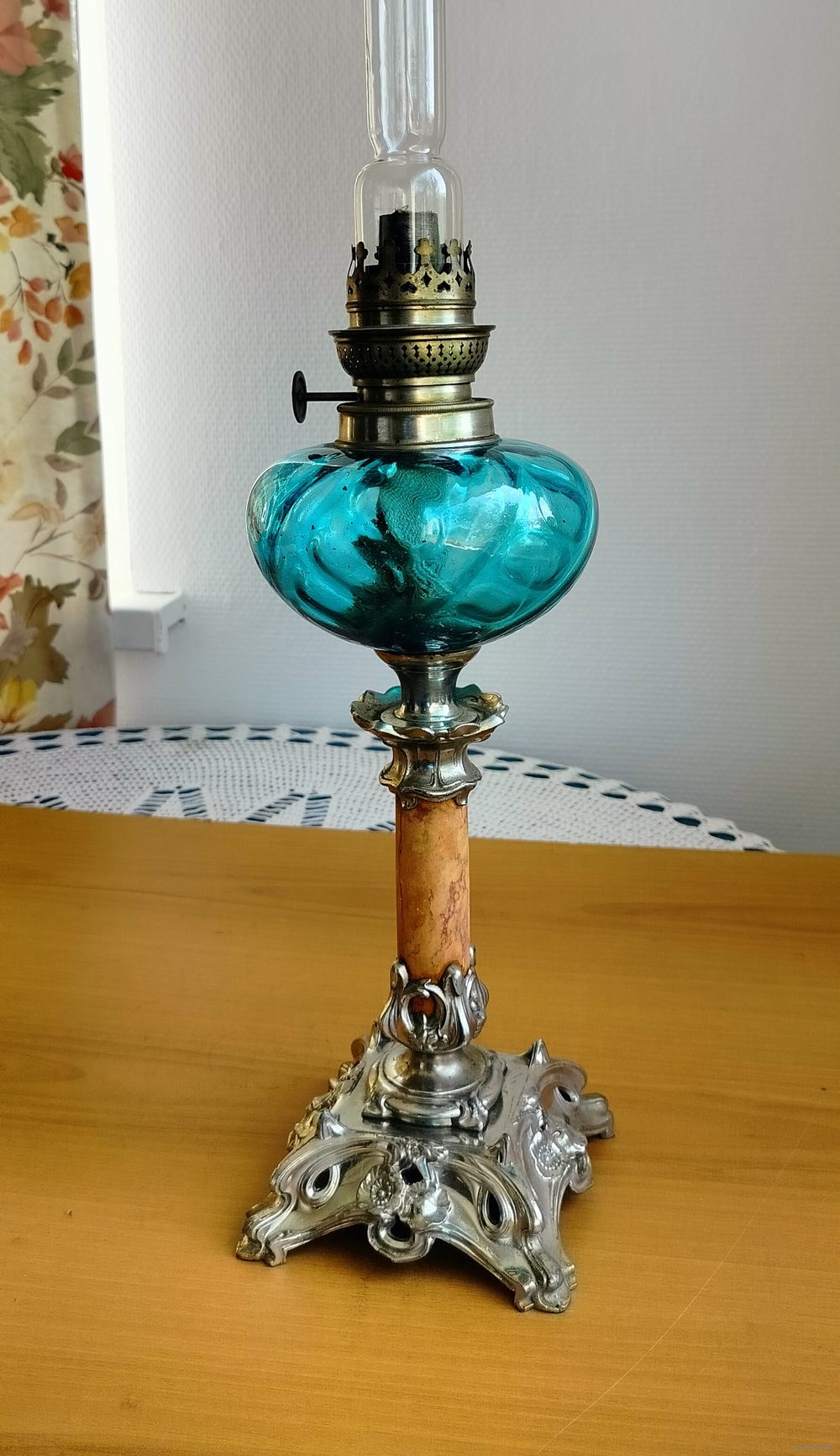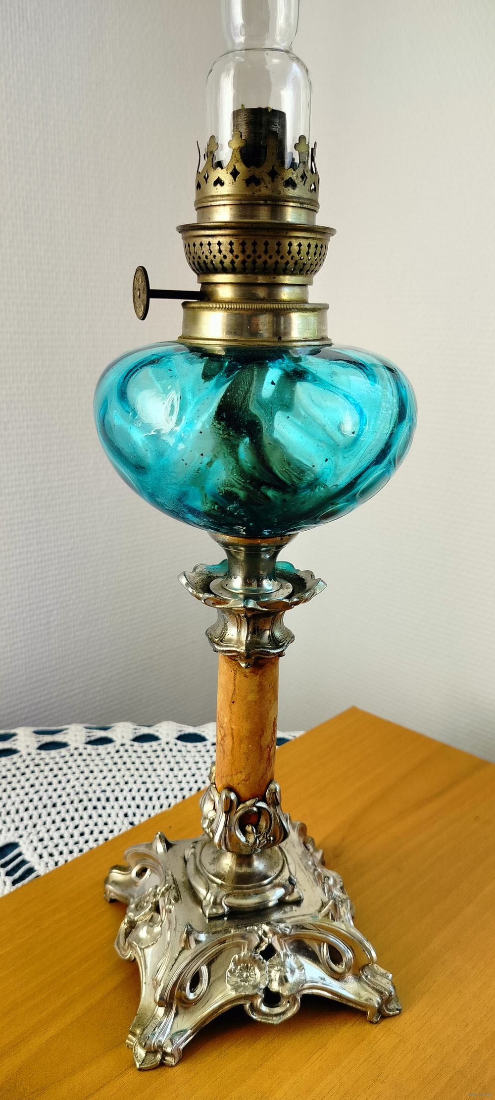 Антикварная французская керосиновая лампа. Колба оригинальная в комплекте.