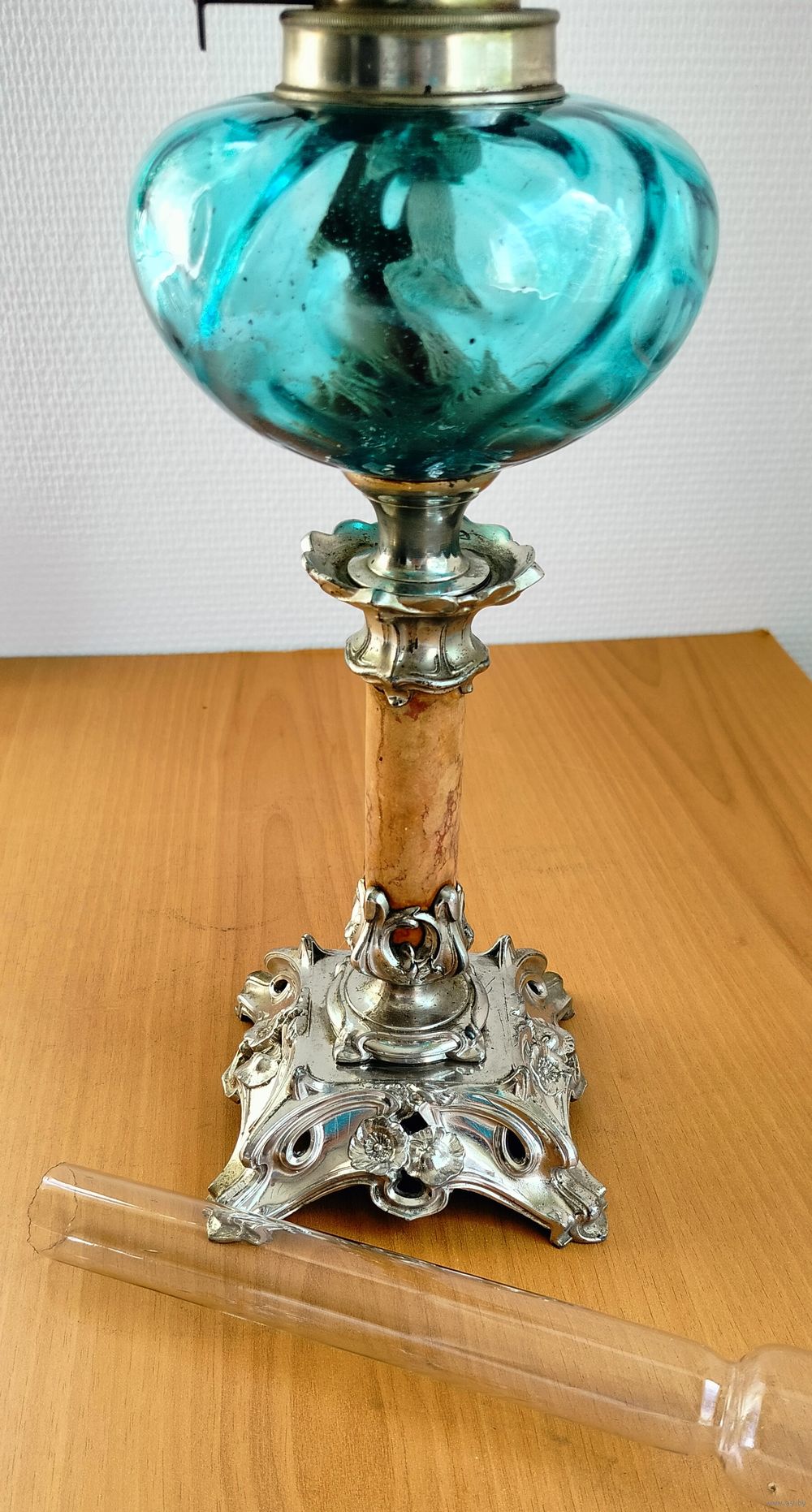 Антикварная французская керосиновая лампа. Колба оригинальная в комплекте.
