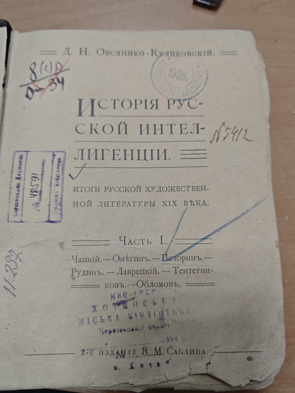 Антикварная книга - История русской интеллигенции. 1899 года