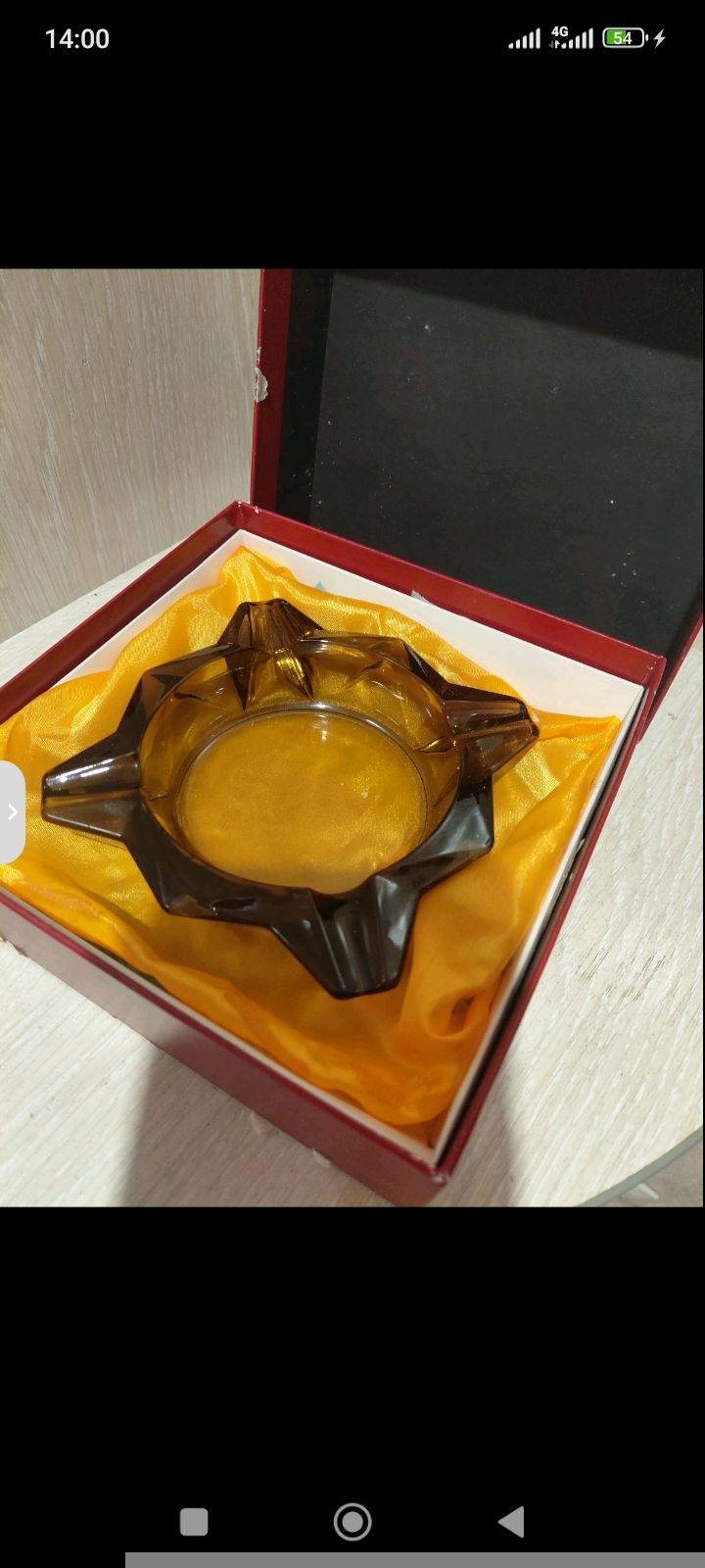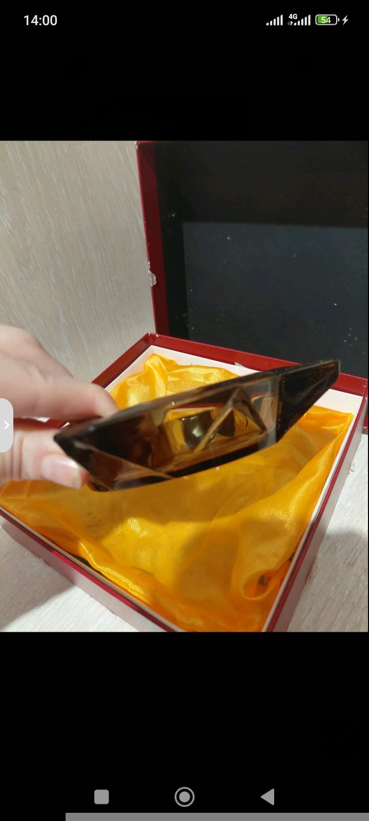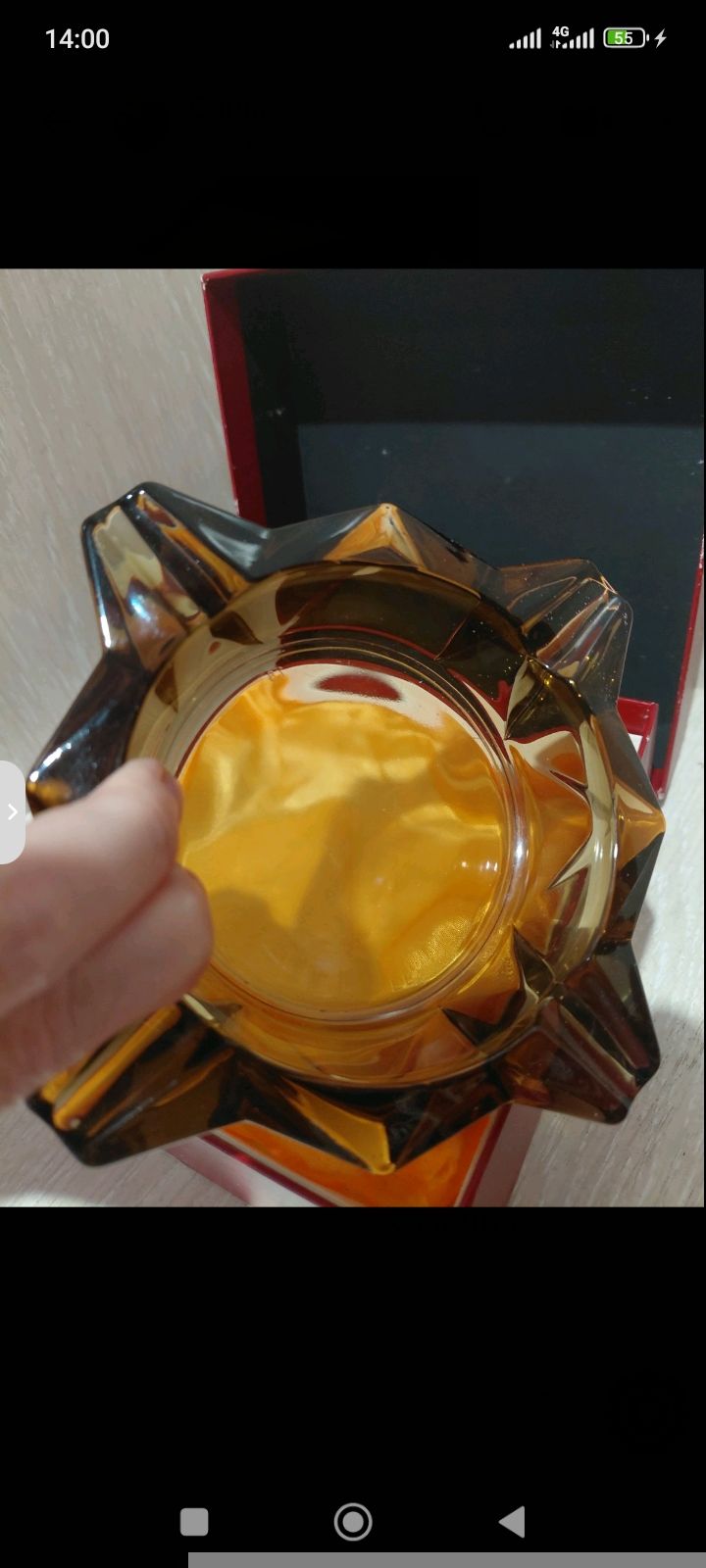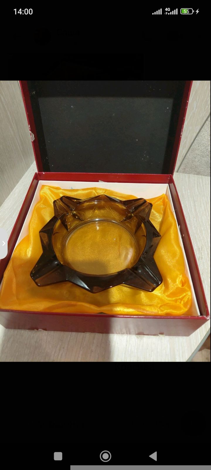 Новая Французская Брендовая Пепельница из Янтарного Стекла ручной Полировки размер 10 на 10 см в оригинальном кейсе
