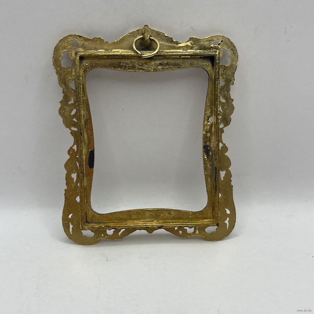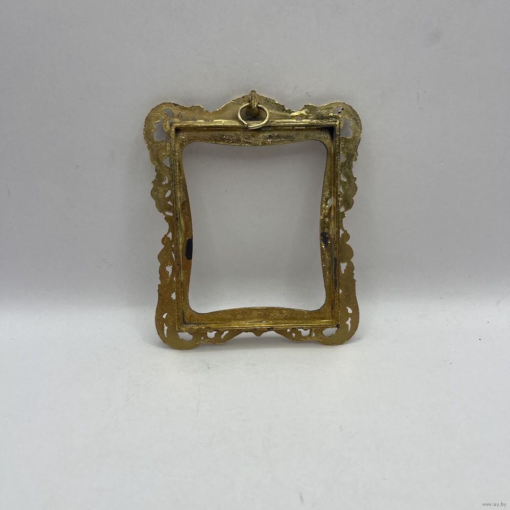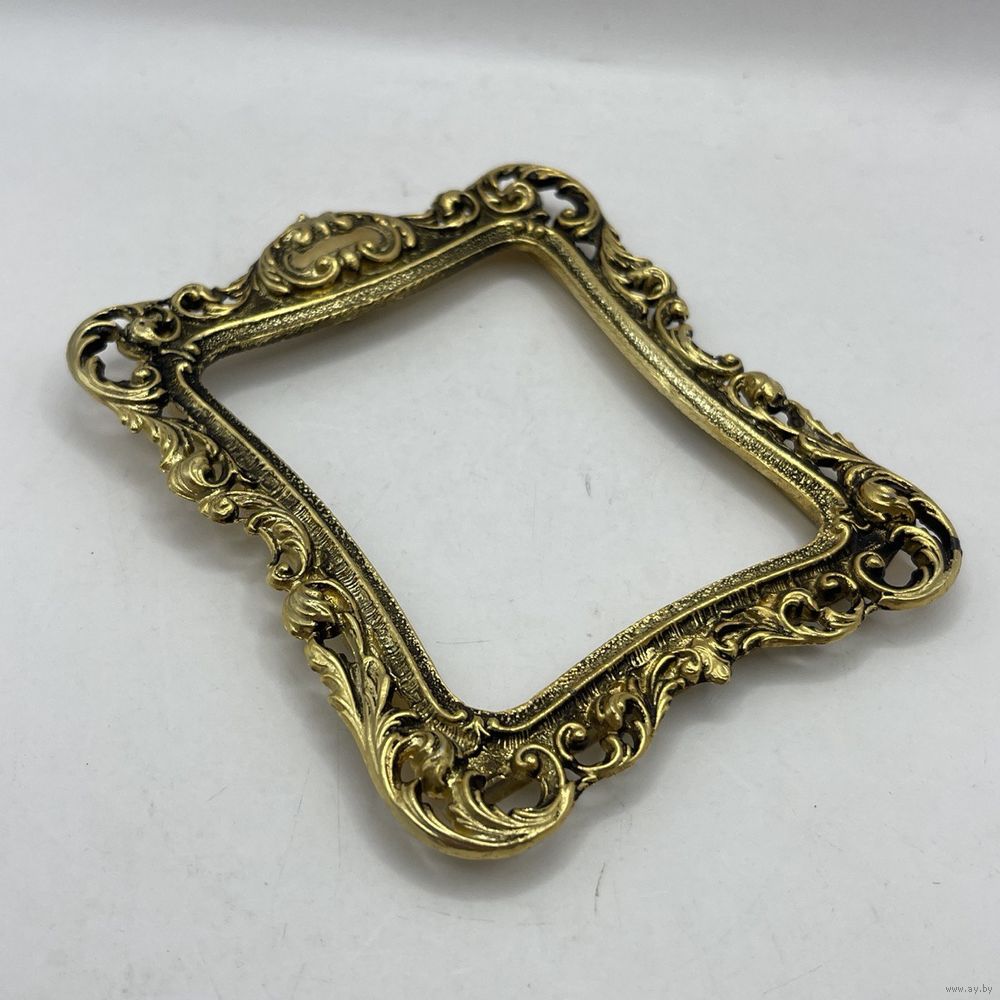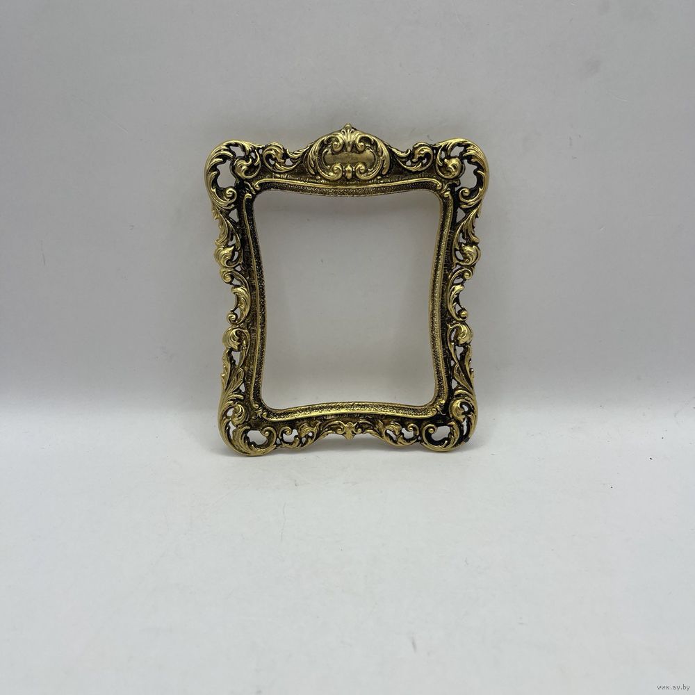 Антикварная настенная рамка в стиле барокко с рельефными прорезными завитками, выполнена из металлического сплава с бронзированным покрытием. Франция. 1930-е г.г. Размер 10 х 11 см. Под фото 6,5 х 7,5 см. Вес 150 г. С кольцом-подвесом. Естественная патина. Отсутствует подложка.