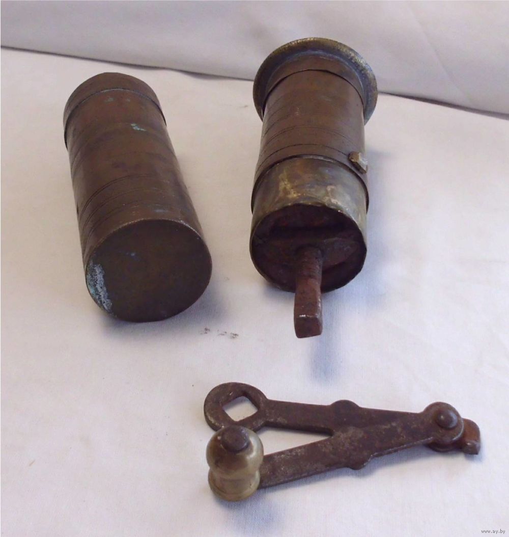 Корпус - латунь, жёрнов - сталь.