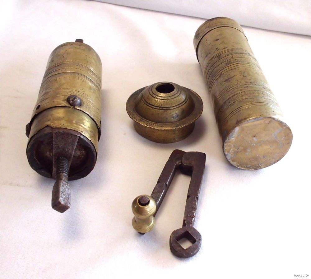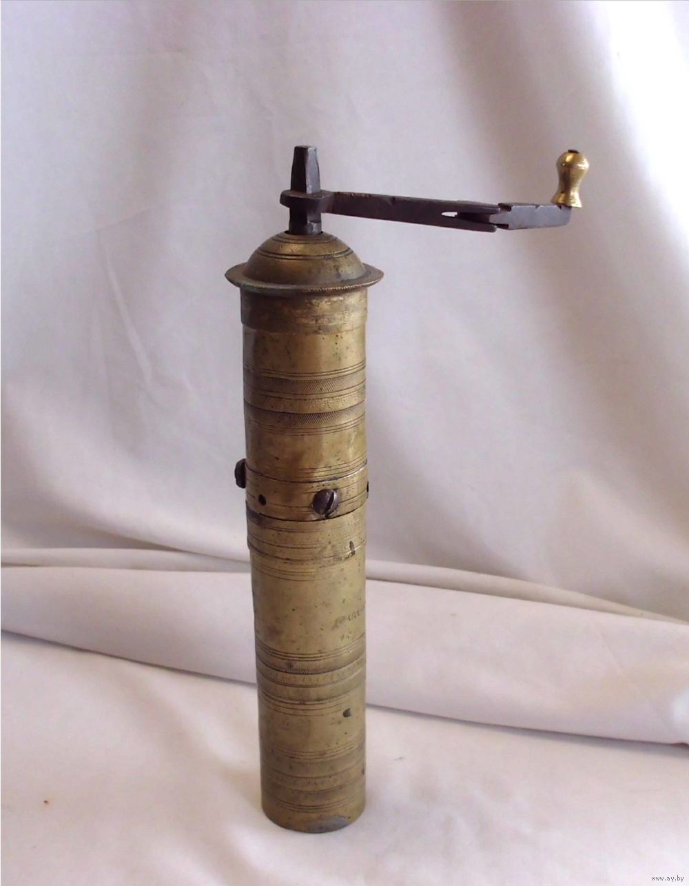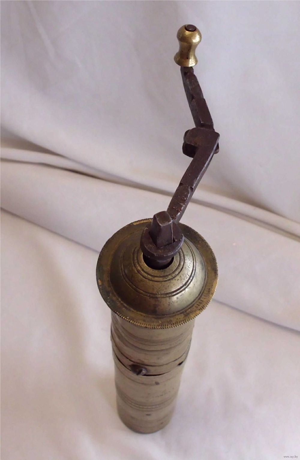 Большая антикварная ручная кофемолка с регулировкой степени помола.